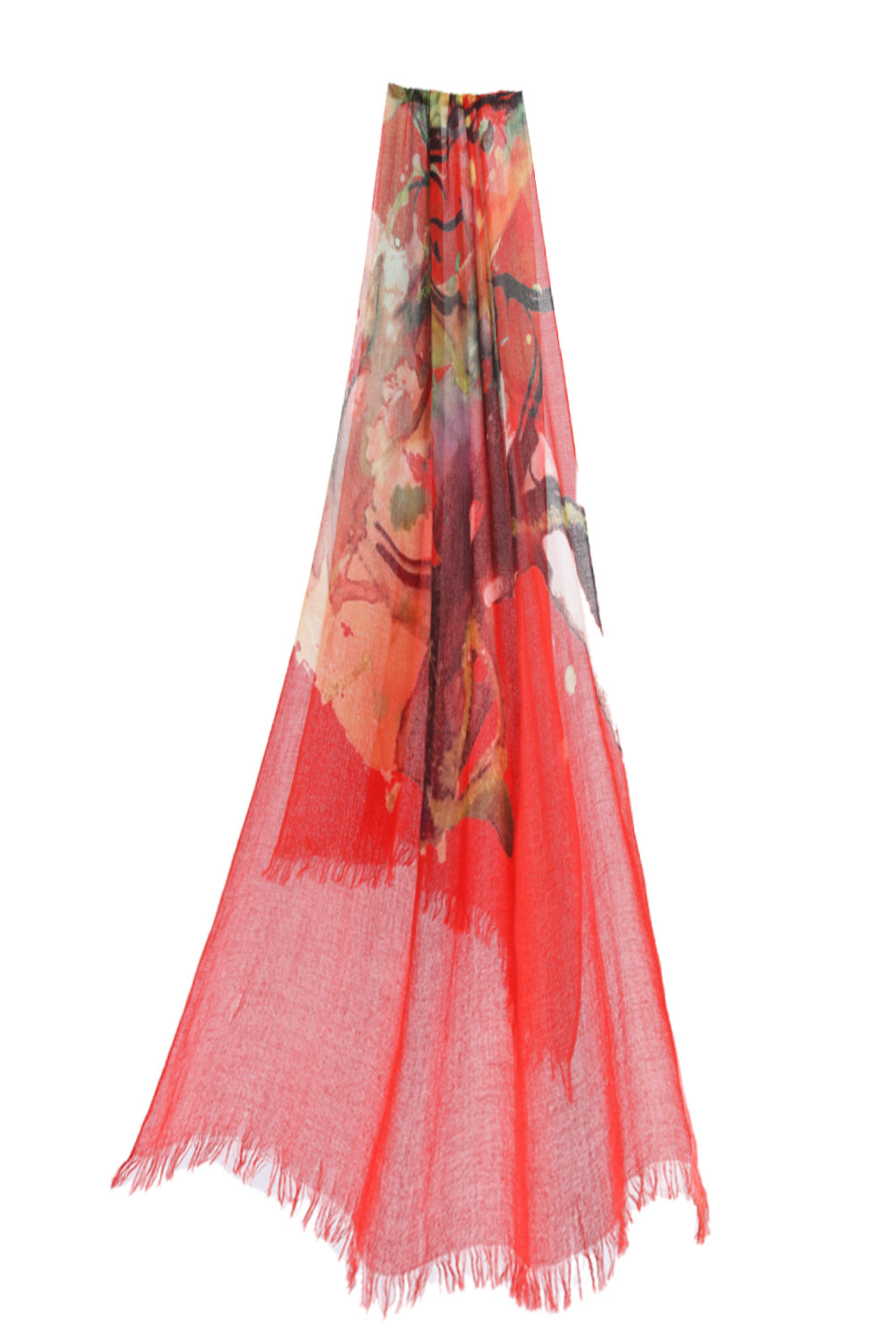 This scarf creation by French artist Francesca Brenda Mitterrand presents "Man and Woman”,an abstract painting...