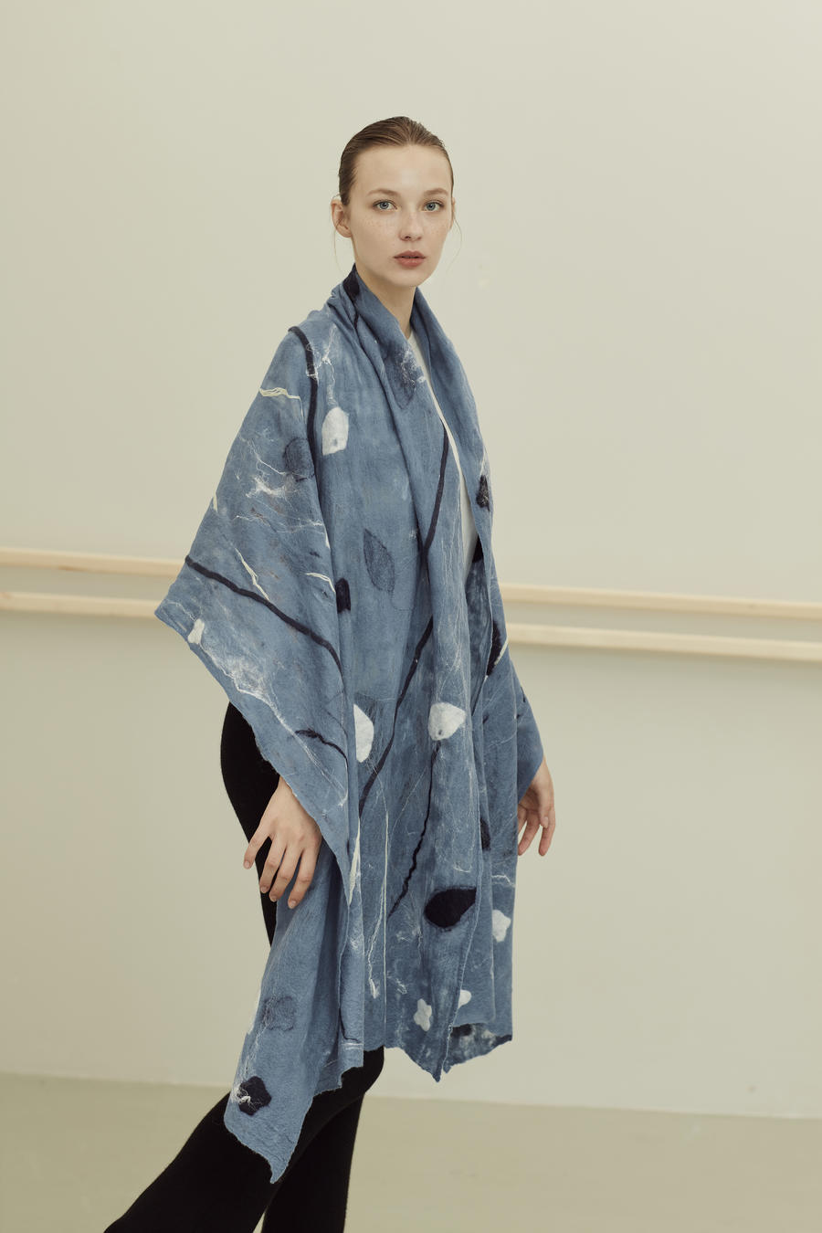 Exclusive naturally-dyed indigo cashmere scarf/shawl