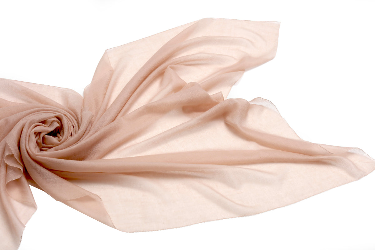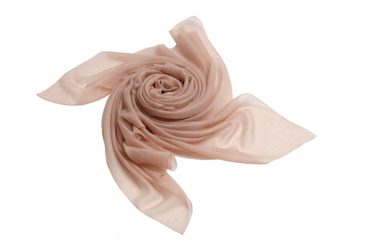 Cut from a lightweight pure cashmere fabric with a eyelash-like hem, this superfine scarf is perfect for layering over a floaty maxi dress on summer evenings.