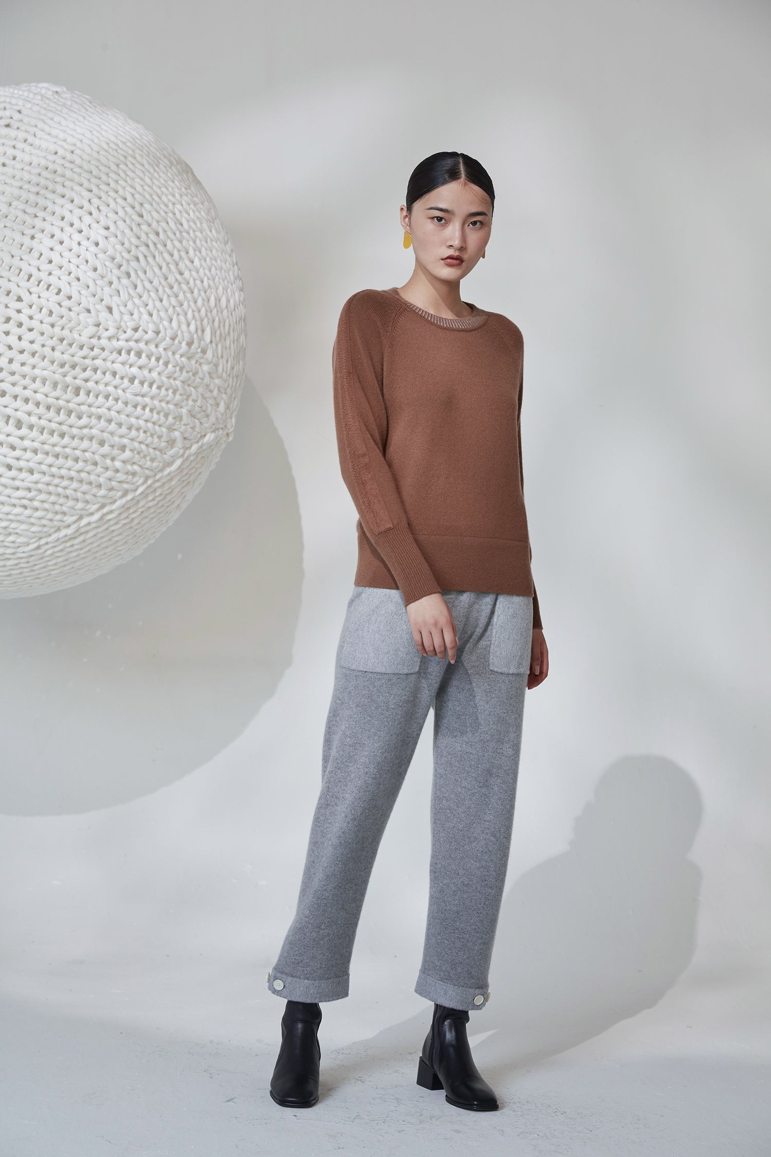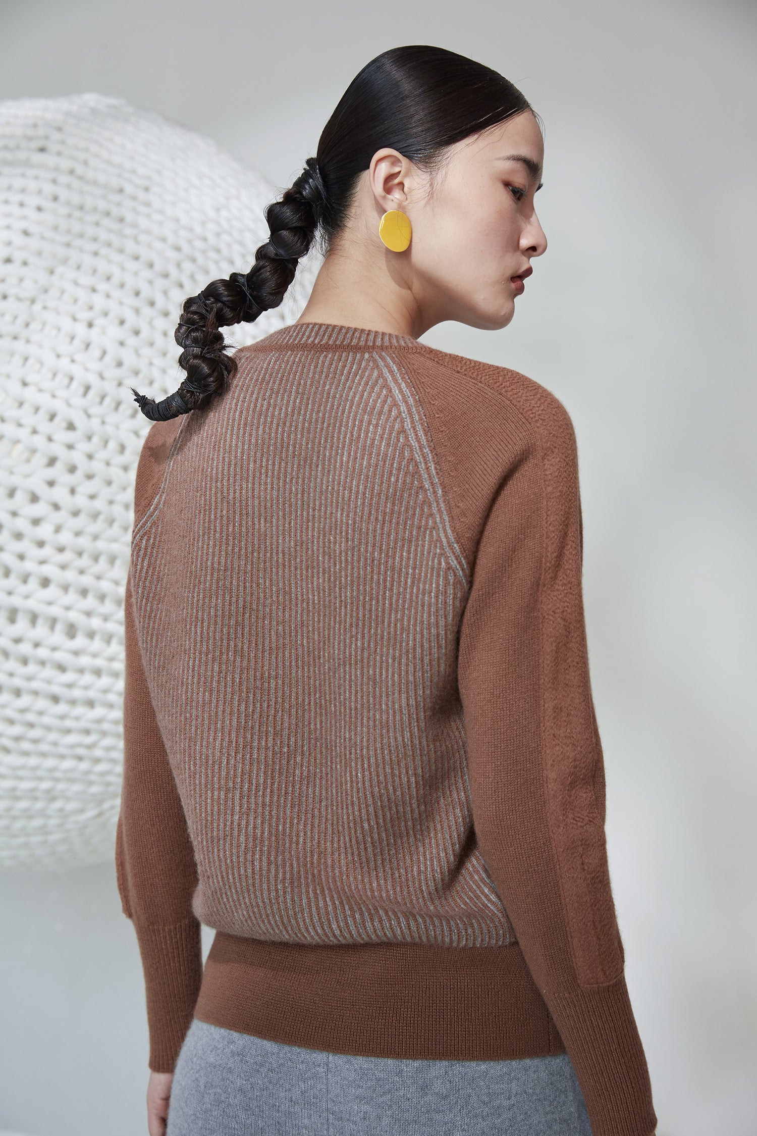Crafted from extra thick 26S2/2 cashmere, with two color cardigan stitch at the back, this jumper is shaped to an relaxed fit topped with a classic round neck and dropped shoulders.