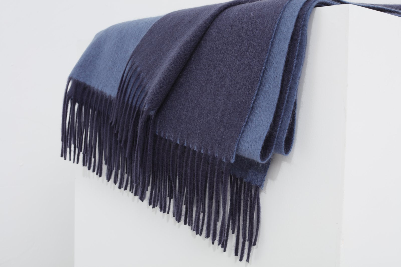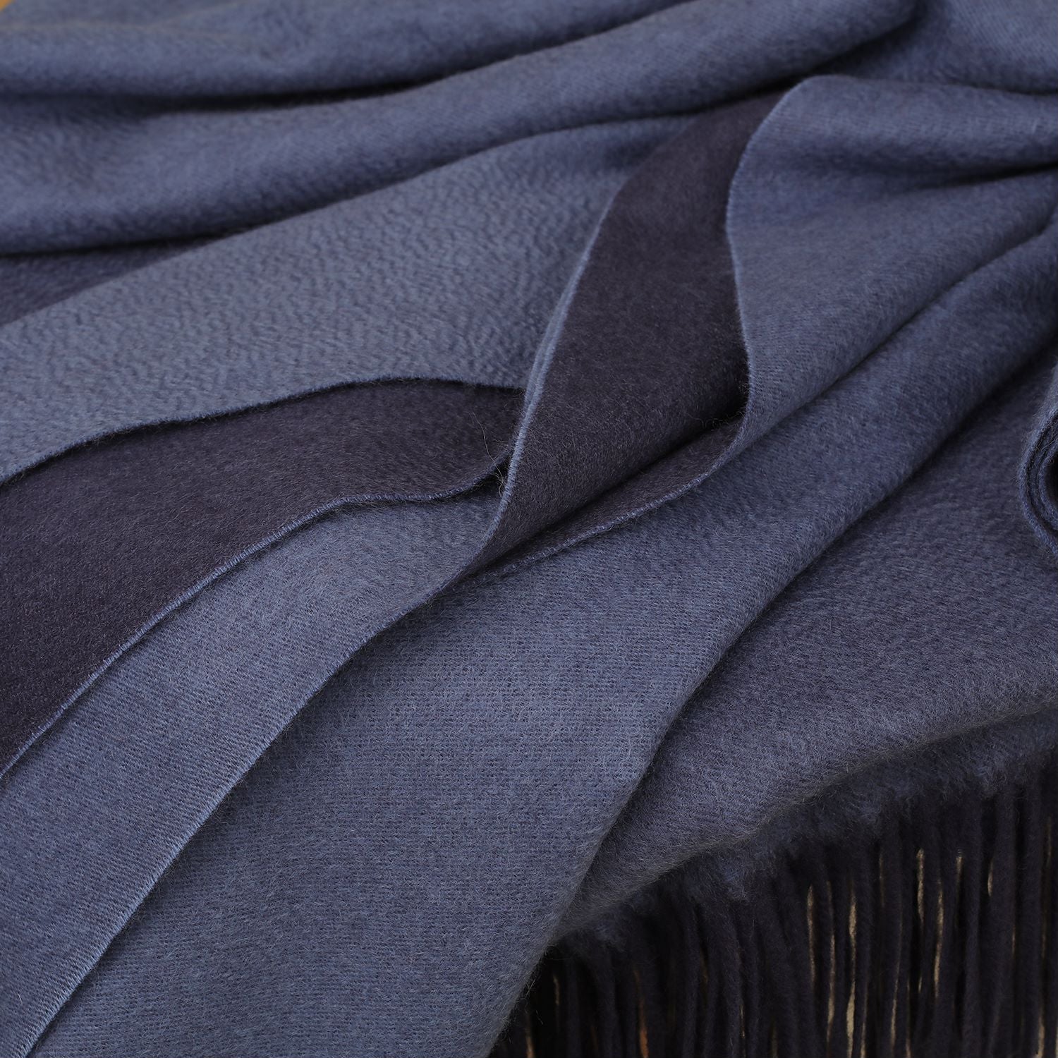 Double-sided ripple cashmere shawl/throw made by 100% baby cashmere sourced from family-owned pasture in Inner Mongolia, extremely soft, it provides luxurious warmth to the home. Features handmade tassels and is designed to resist the high altitude cold, providing excellent warmth.