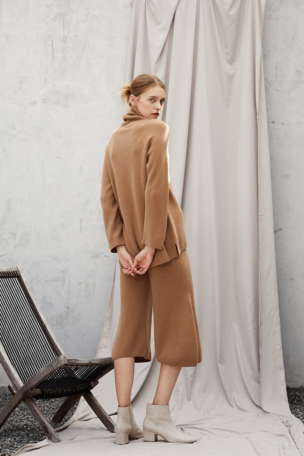 Turtle neck mid-length cashmere jumper / Cropped cashmere trousers