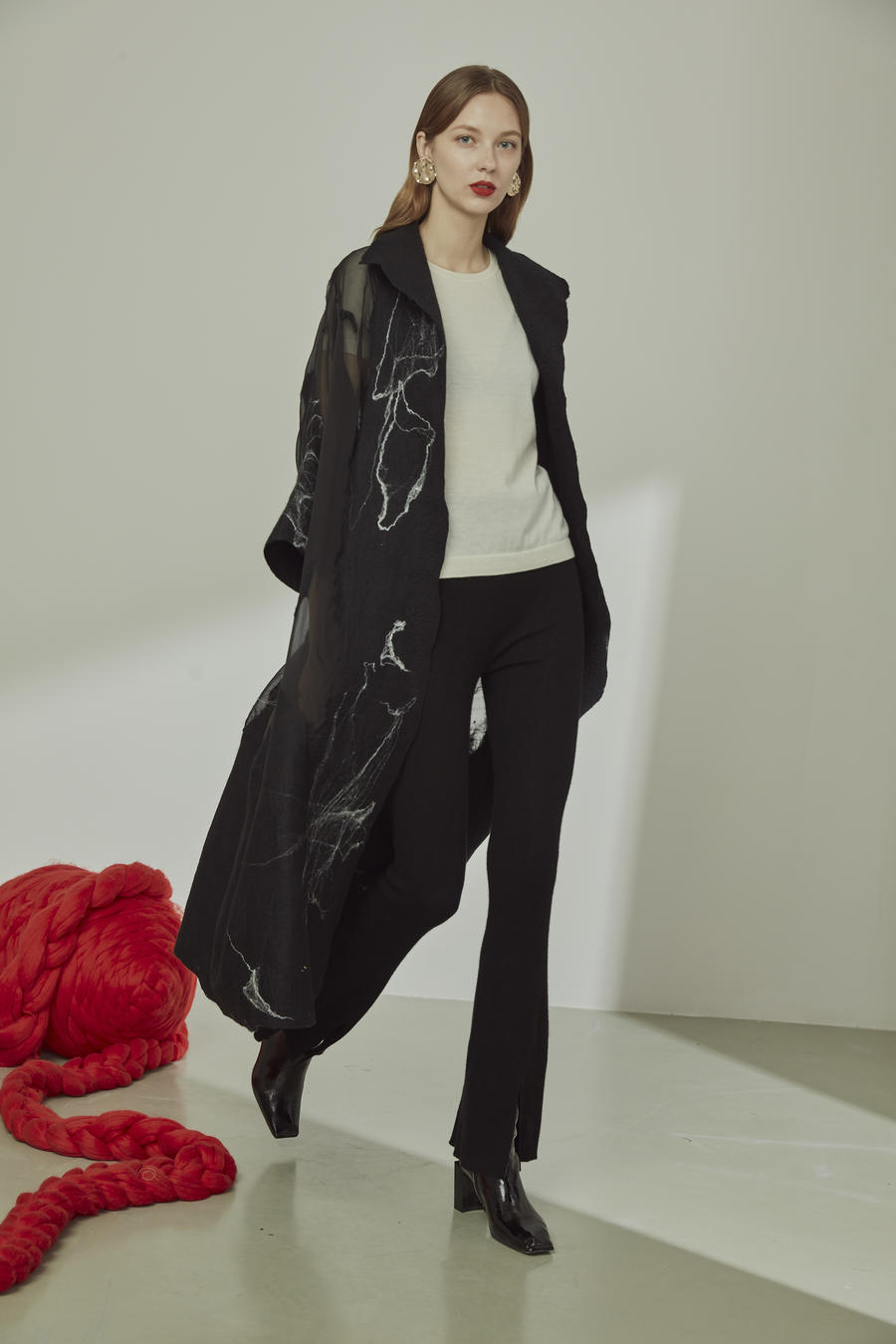 Ribbed stocking-stitch trousers with fitted silhouette, spun with worsted yarn. Can be teamed with any tops.