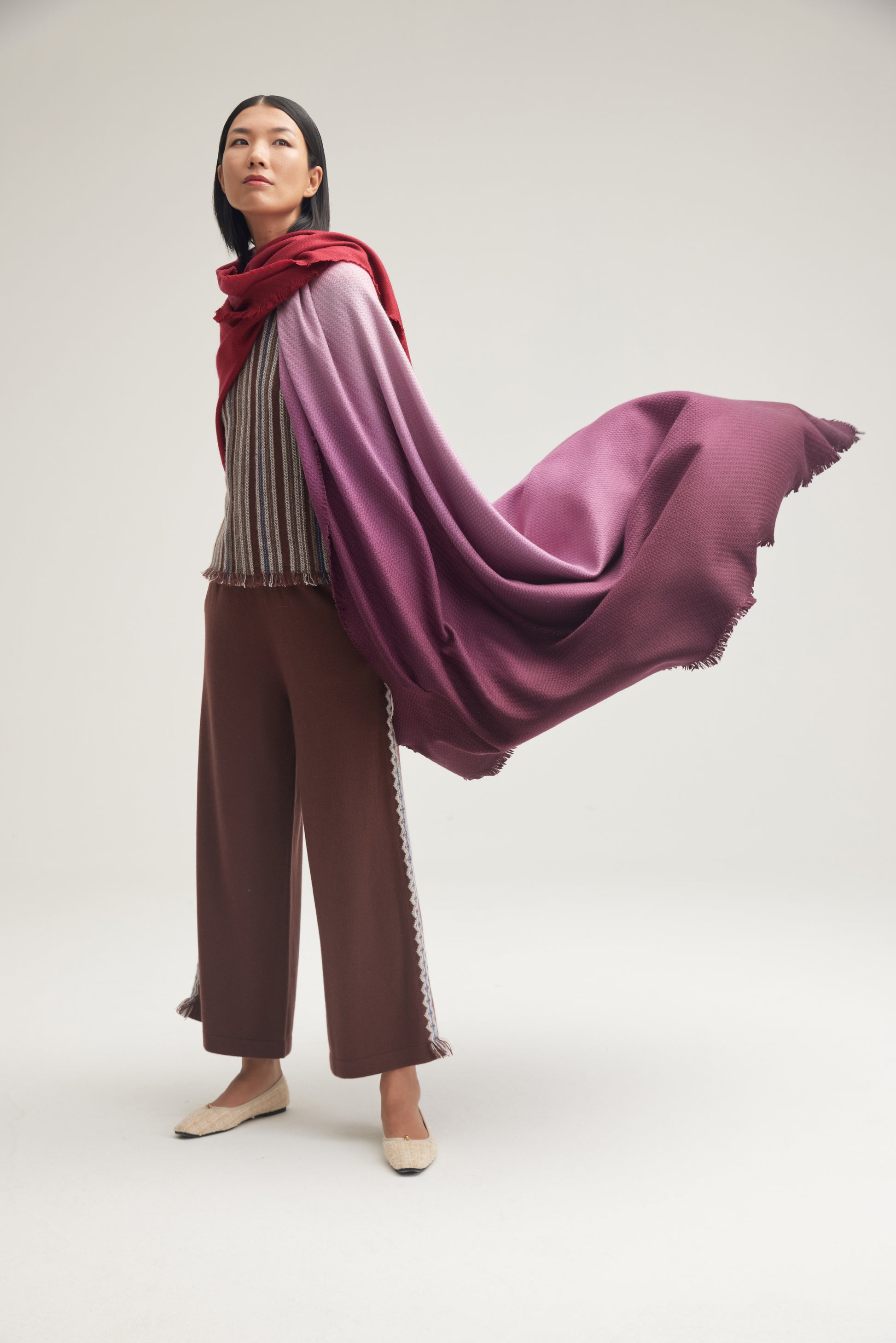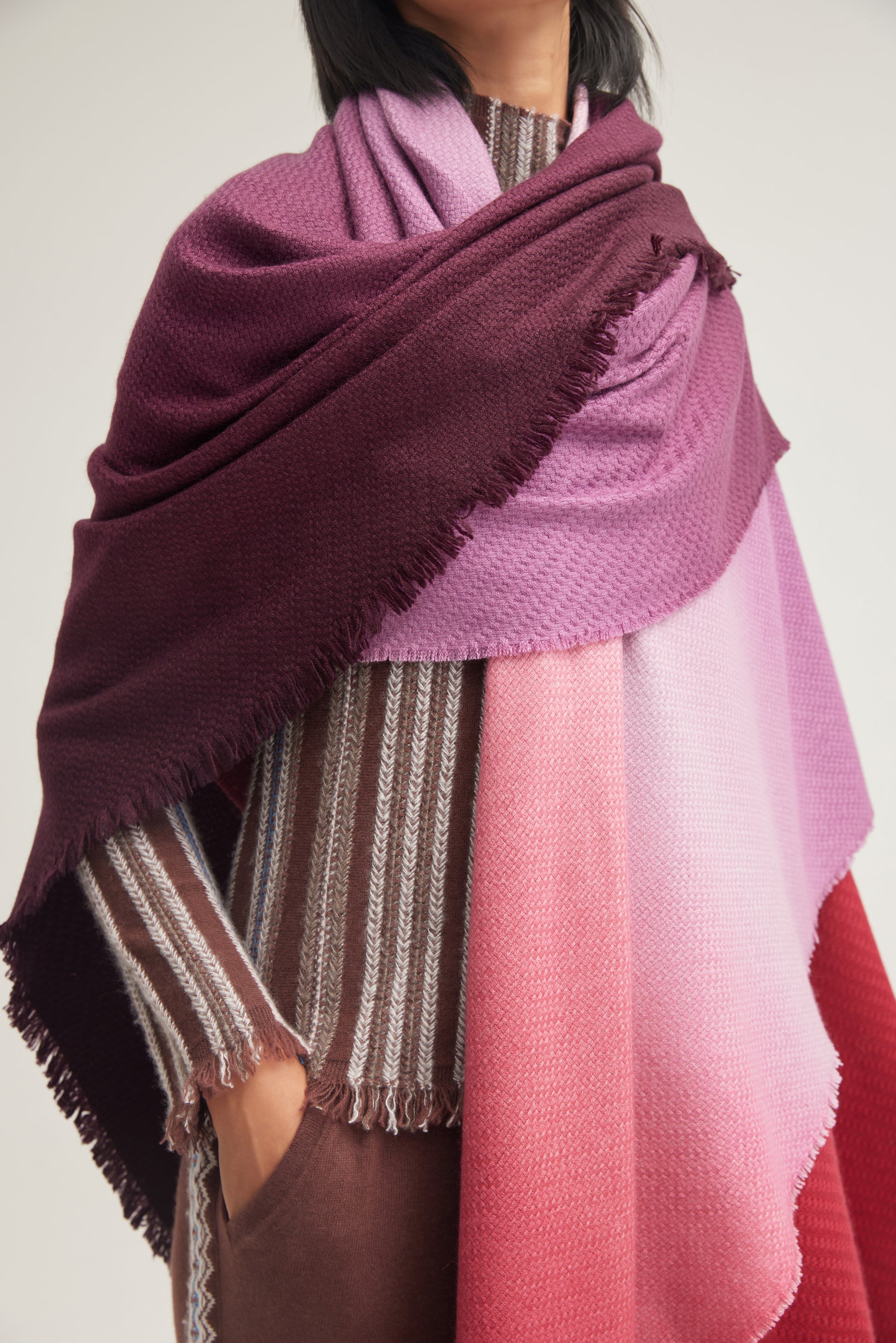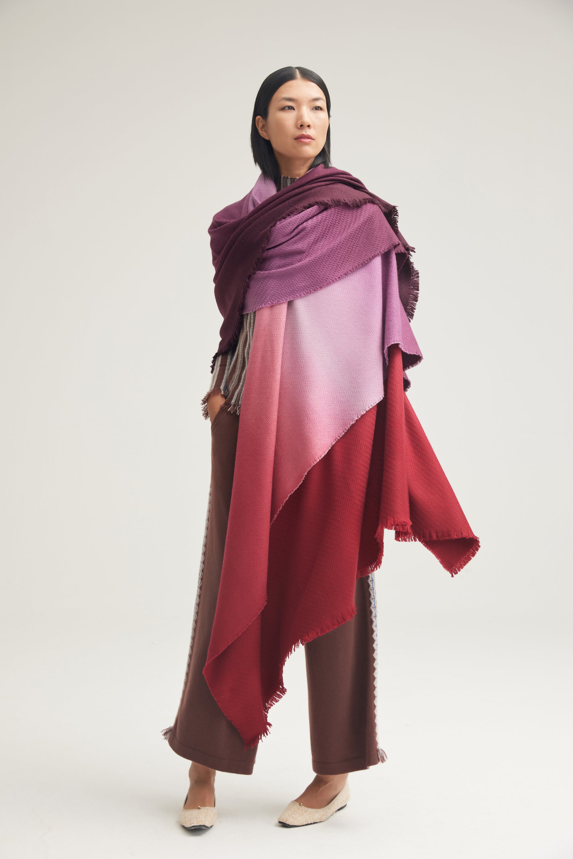 The hand-woven blanket, originating from an ancient tibet handcraft technique, 100% cashmere, dip dye design.