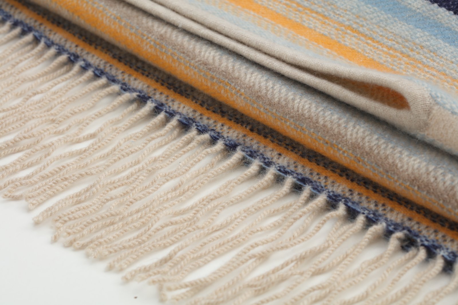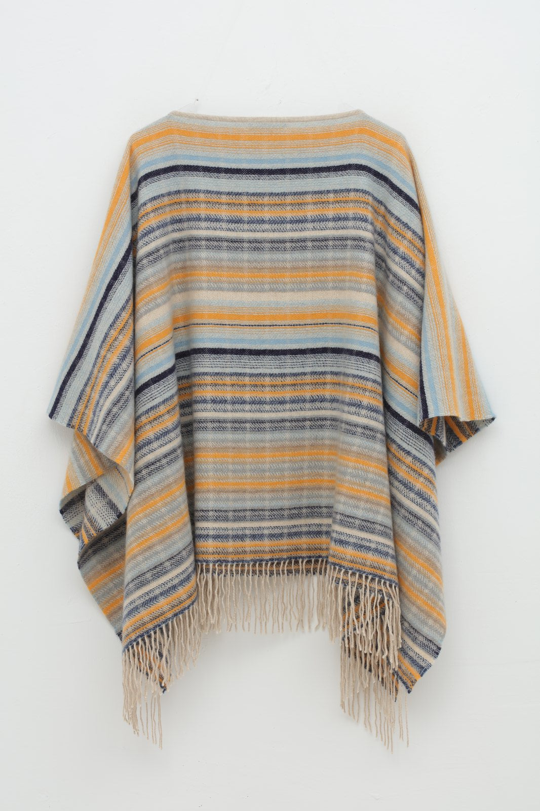 Traditional technology handmade natural cashmere cape from Tibet. This large size cape features handmade tassels and stripe pattern is designed to resist the high altitude cold, providing excellent warmth. adhere to using natural, environmentally friendly cashmere that is non-dyed and free of additives.