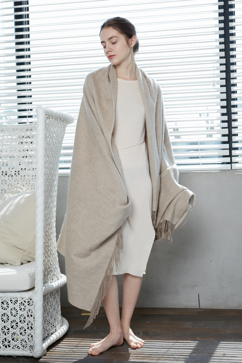 NATURAL undyed pure cashmere blanket