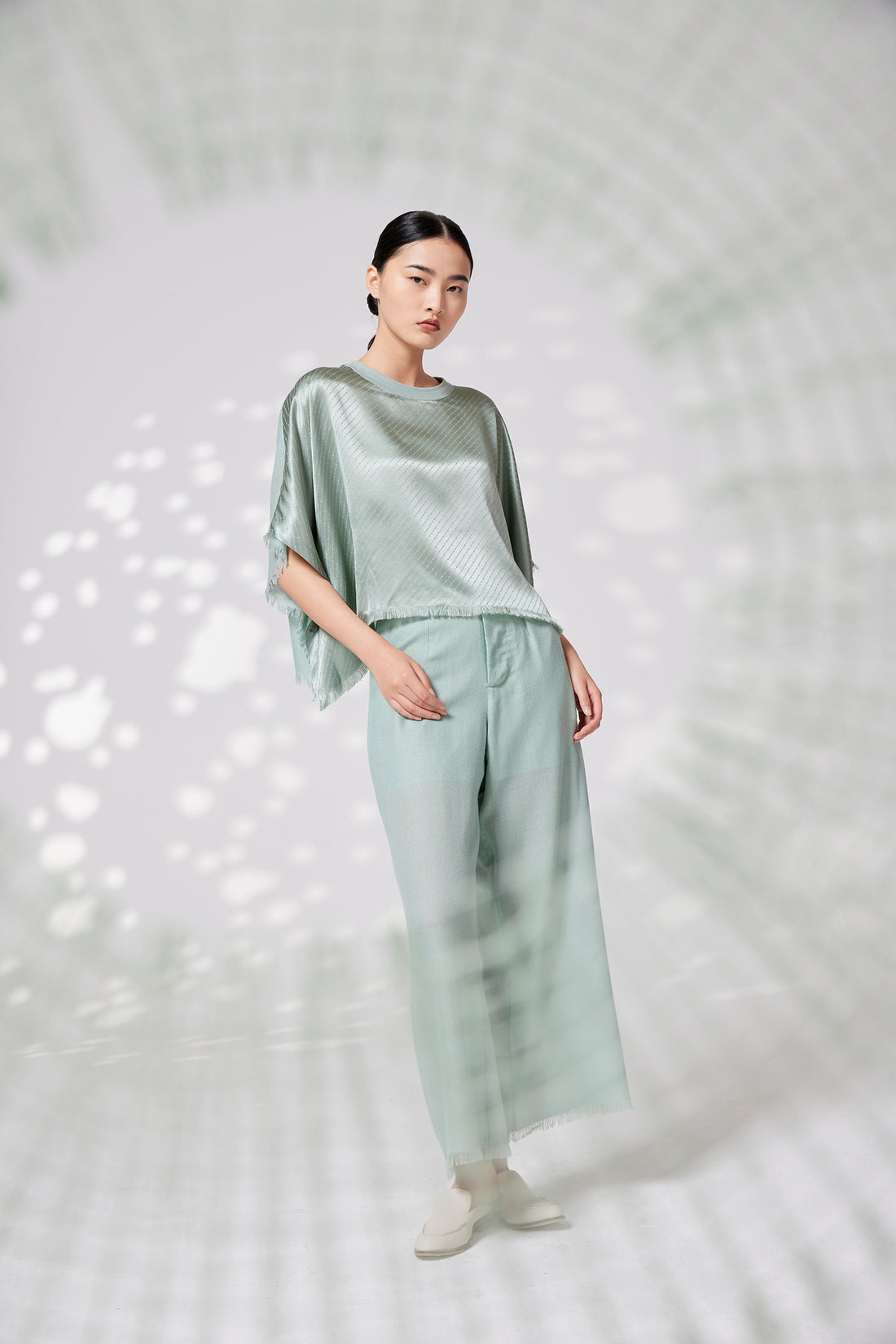 Light-weight, relaxed cut wide leg cropped trouser in knitted 26S/2 baby cashmere. It features a...
