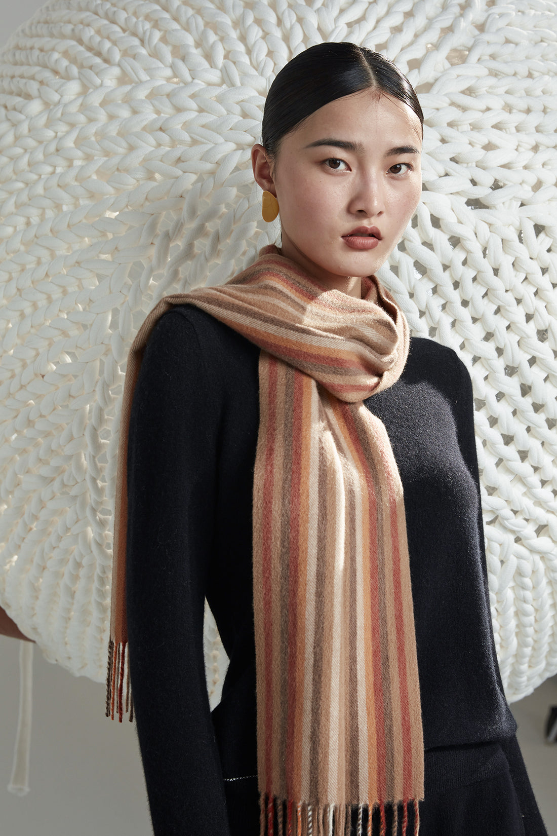 SILK NEBULA Handcrafted cashmere felt scarf with nappa fringe