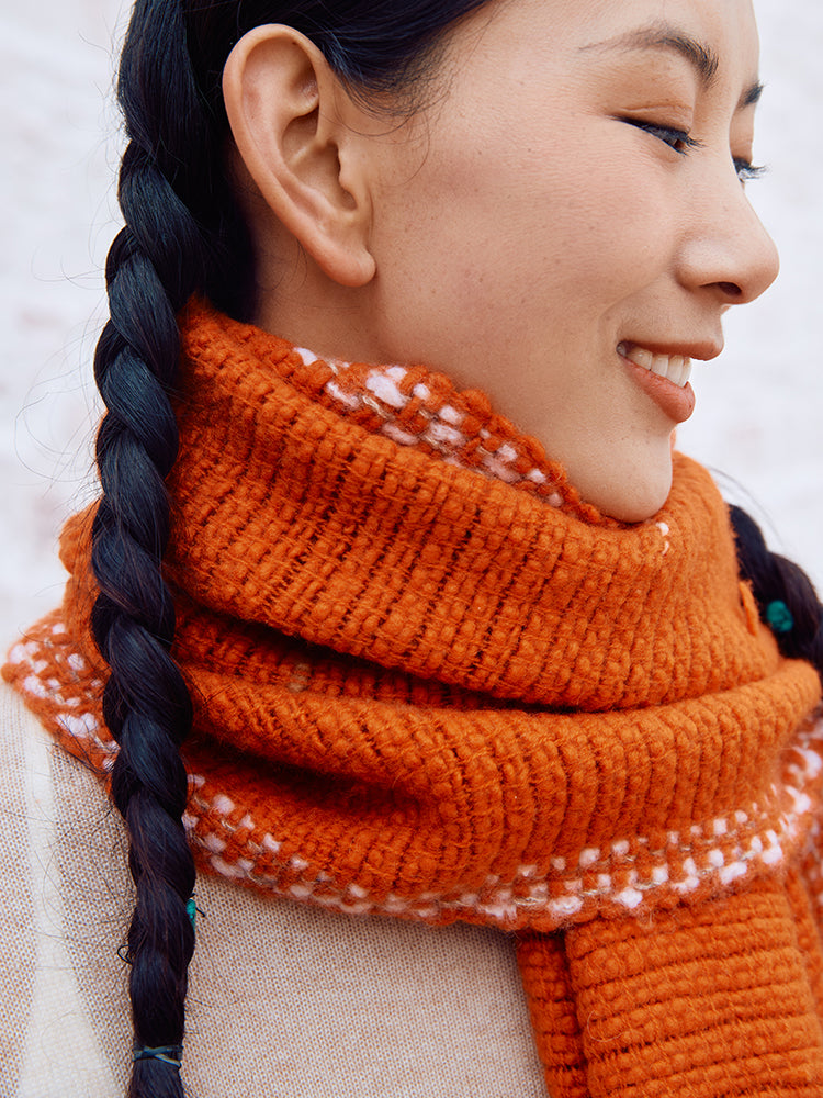 Through traditional Pulu craftsmanship, a 2000-years-old tech, the fabric achieves a lightweight yet resilient texture. The hand-twisted cashmere yarn creates a natural surface texture, delivering a warm and skin-friendly touch. Whether draped over the shoulders or laid across the knees, it offers a cloud-like comfort experience.