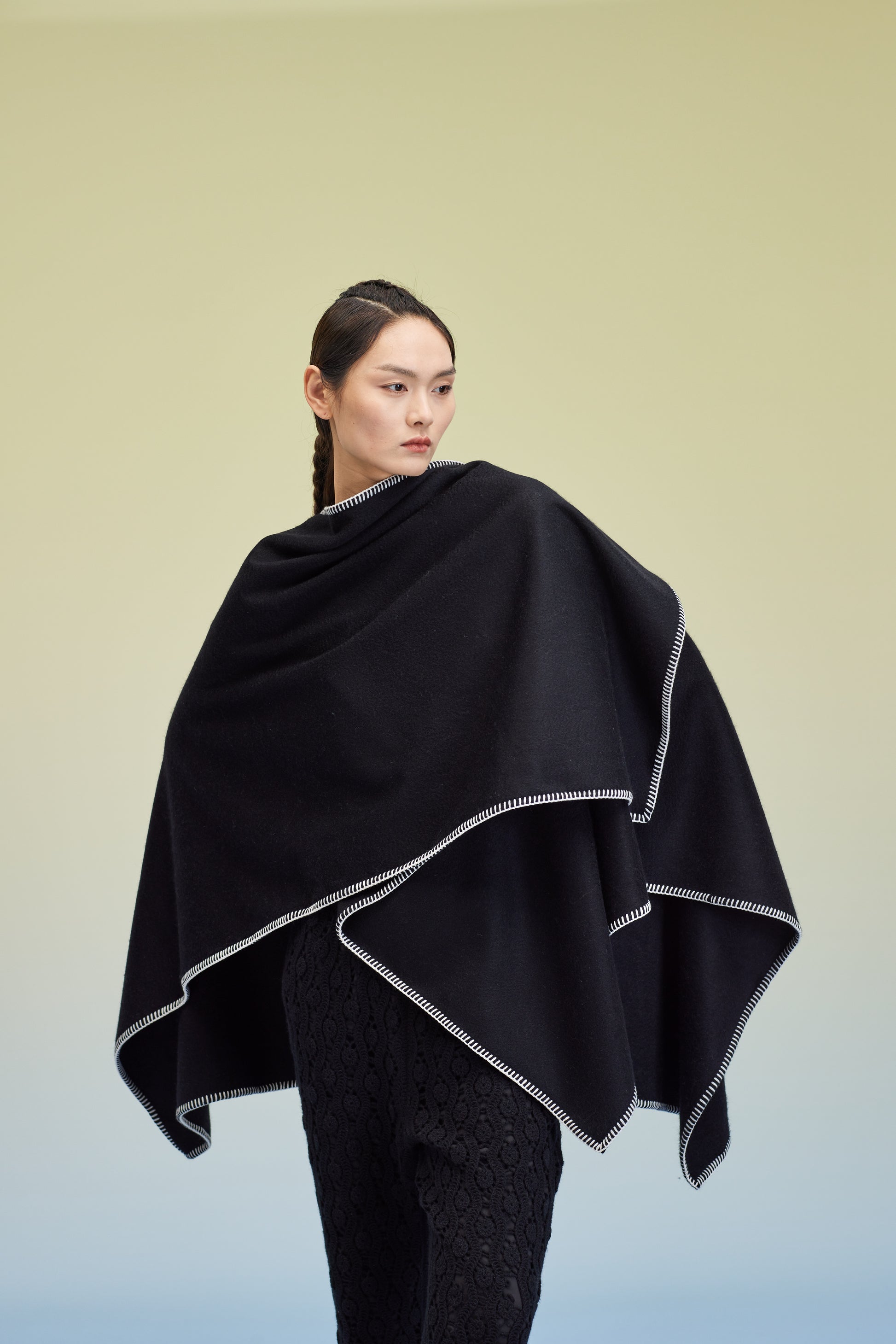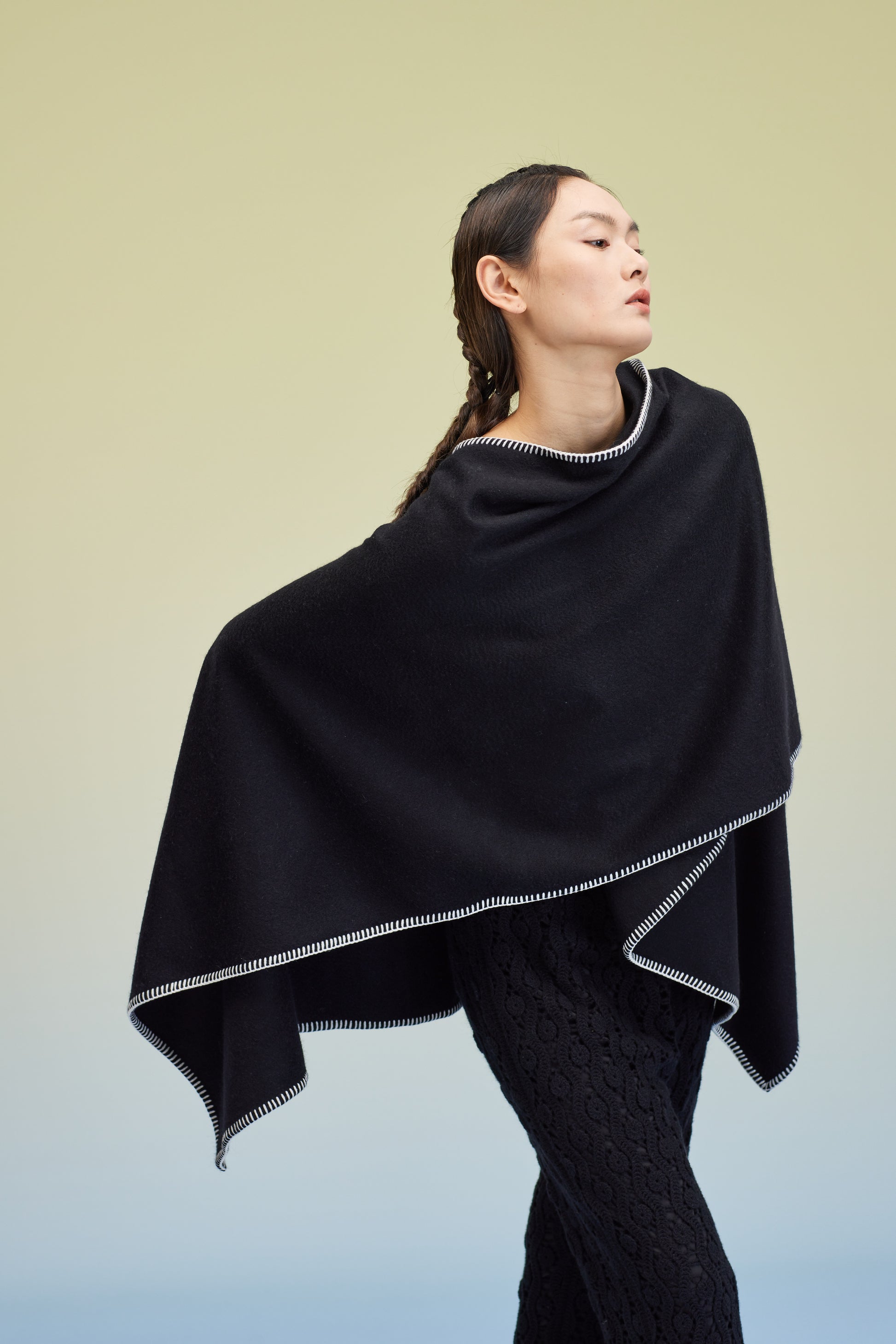 Wrap yourself in pure luxury with this exquisite U-shaped cashmere shawl. Crafted from the finest 100% baby cashmere, sourced from family-owned pastures in Inner Mongolia, this piece offers an unparalleled blend of softness and warmth. Its contrasting hem adds a touch of sophistication, making it the perfect accessory for both work and leisure.