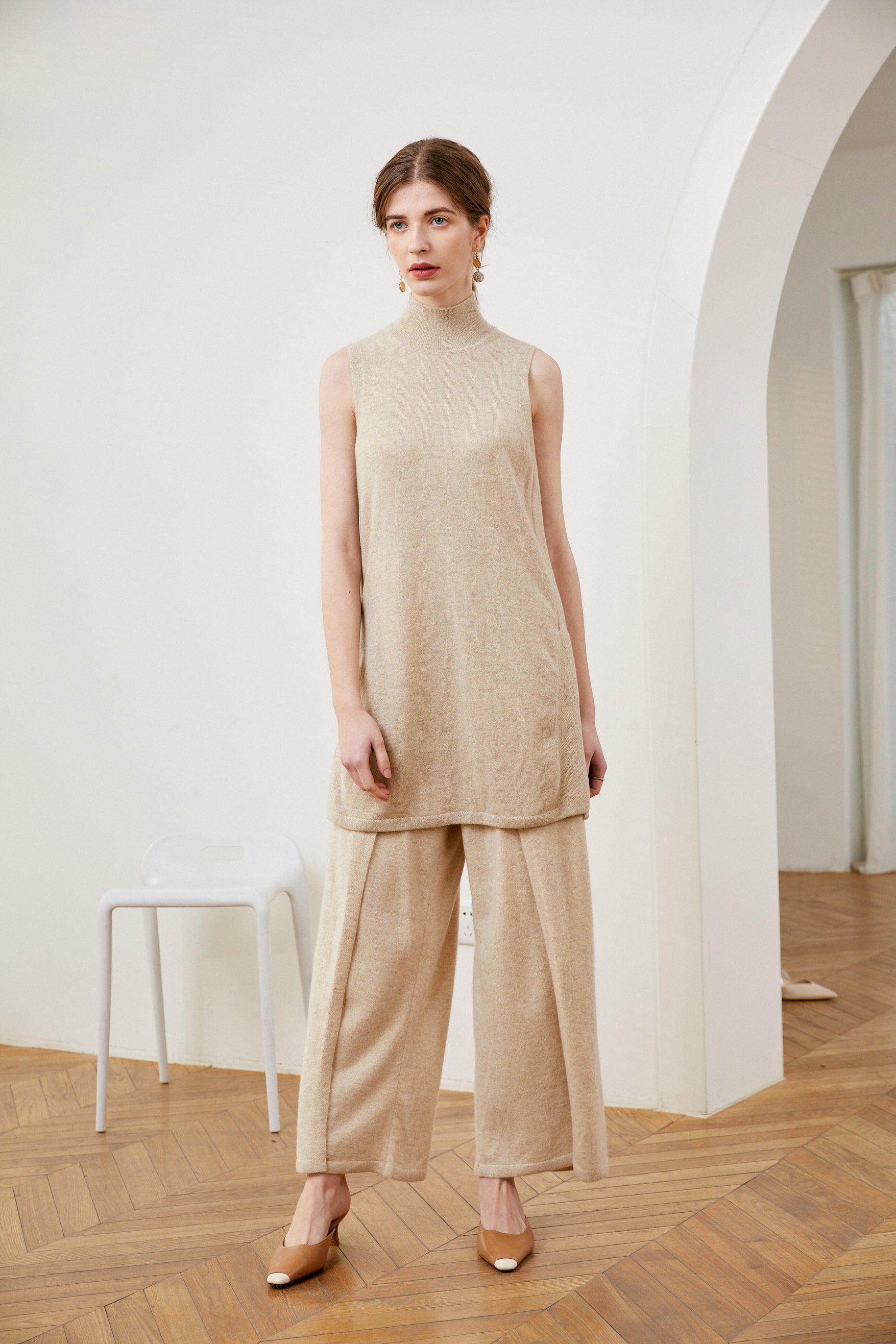 Cashmere pants knitted by pure cashmere from Inner Mongolian family-owned pasture. Extremely skin-friendly with feather-light material, this piece is comfortable to bring on a trip or at home.