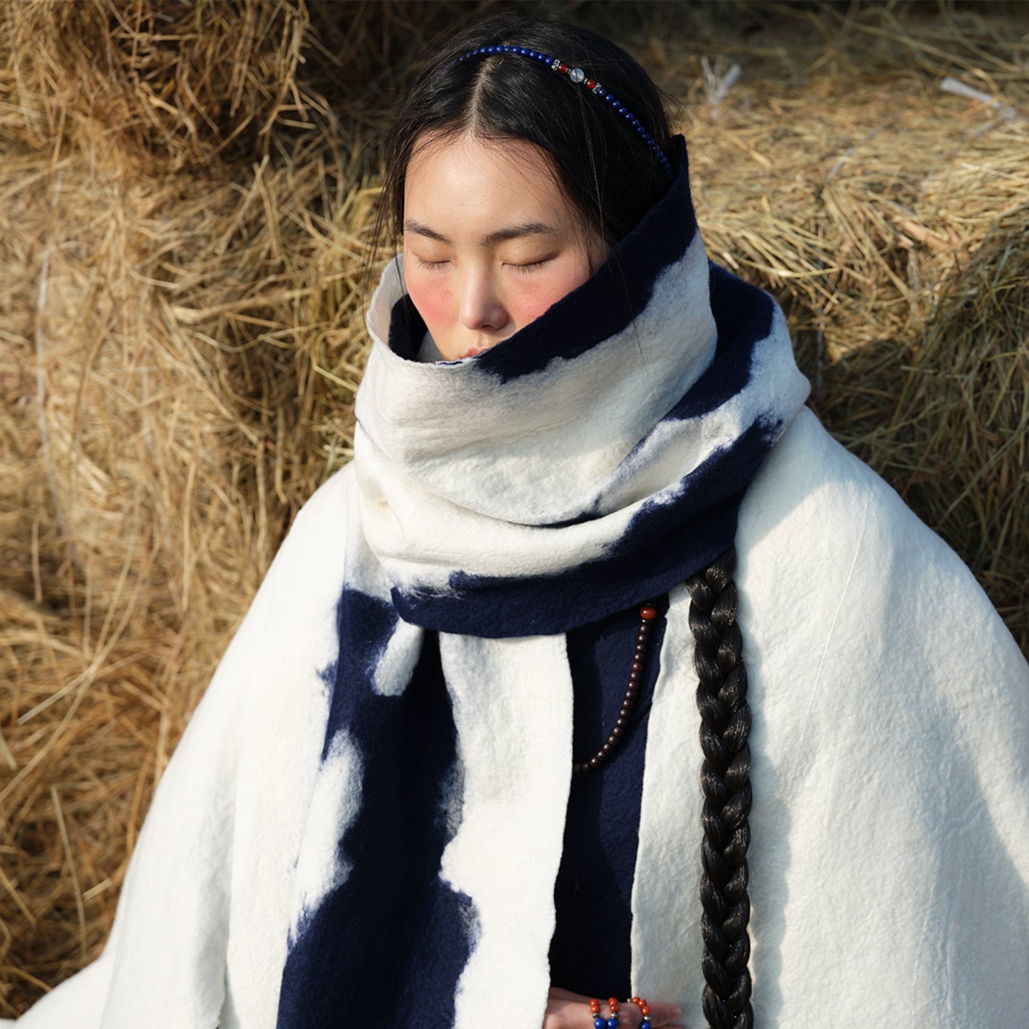 Handcrafted pure cashmere felt scarf, each piece is unique, it’s Mongolian nomadic heritage culture, from natural raw materials, completely eco-friendly production process, with palm temperature, poured from the grassland greetings.