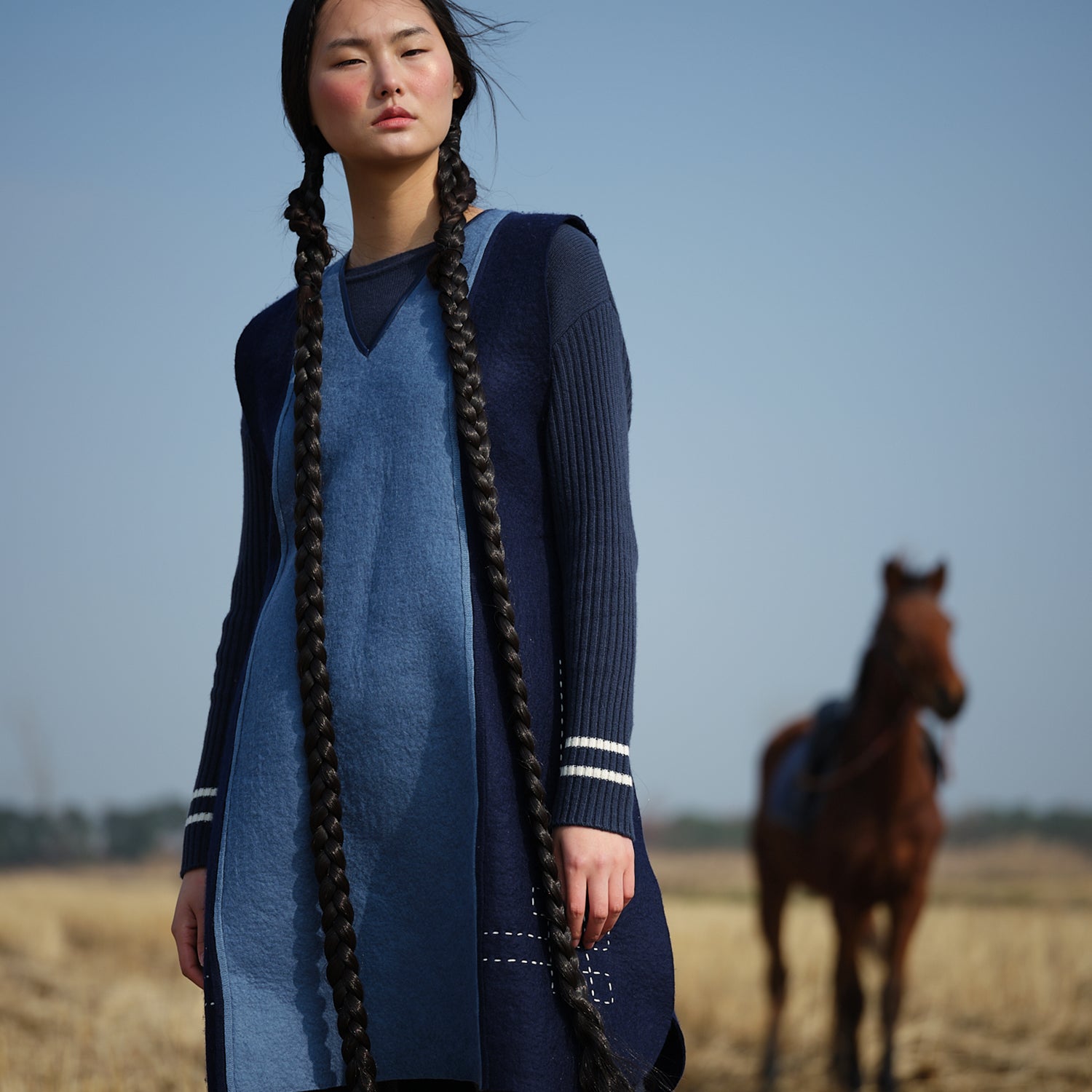 Cashmere felt dress in traditional felt craft production with modern design, it is a noble and exclusive piece.