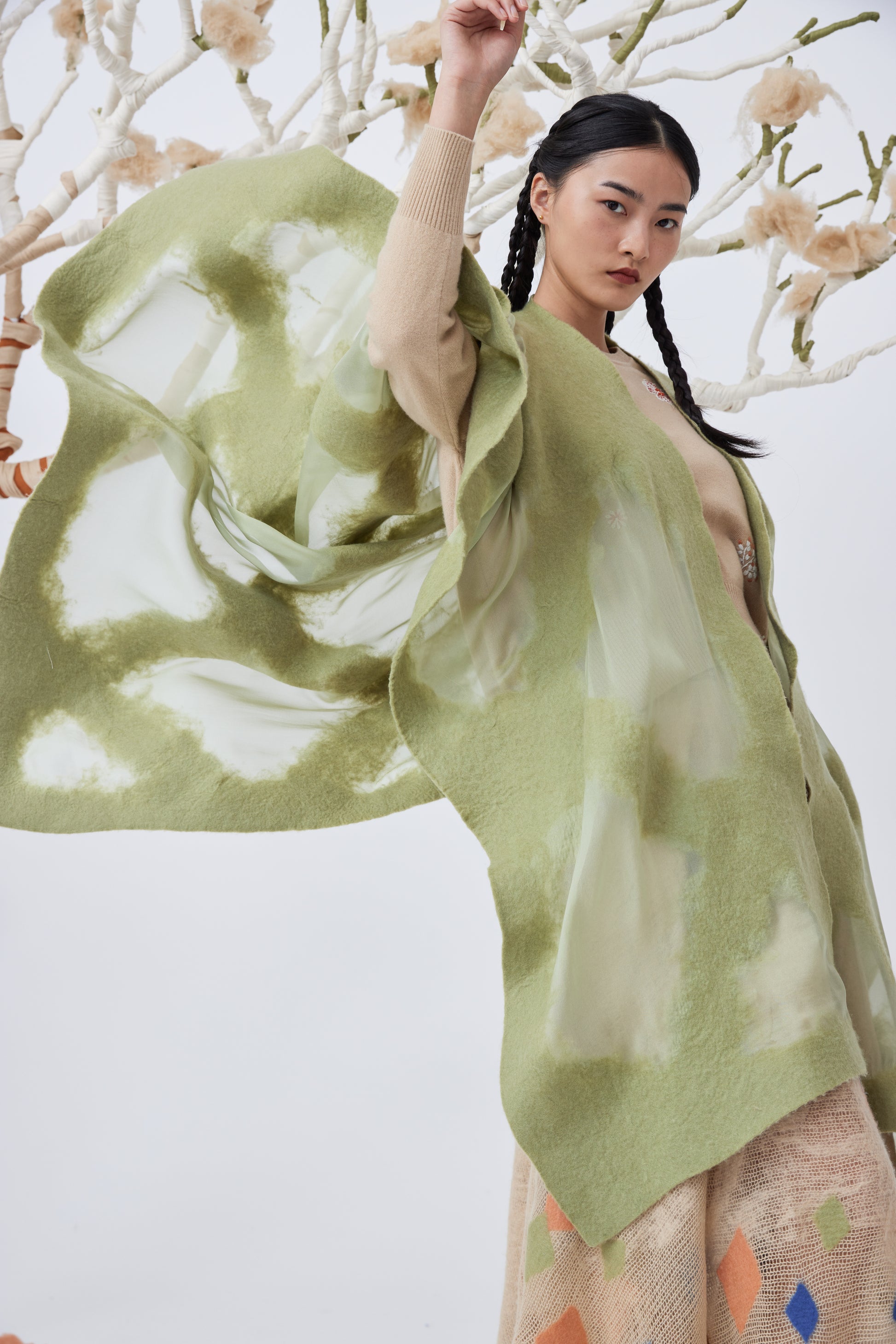 Unique traditional Mongolian cashmere felting joint with pure silk. U-shape cloak and argyle pattern. An artistic handcraft.