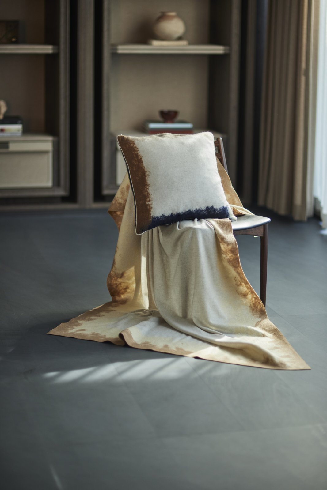 This luxurious cushion has been meticulously hand-treated for 36 hours to achieve the perfect texture and softness. Utilizing Mongolian traditional weaving technology of handcrafted felting, each pillow features contrasting colors and weaving textures, making it a true work of art.