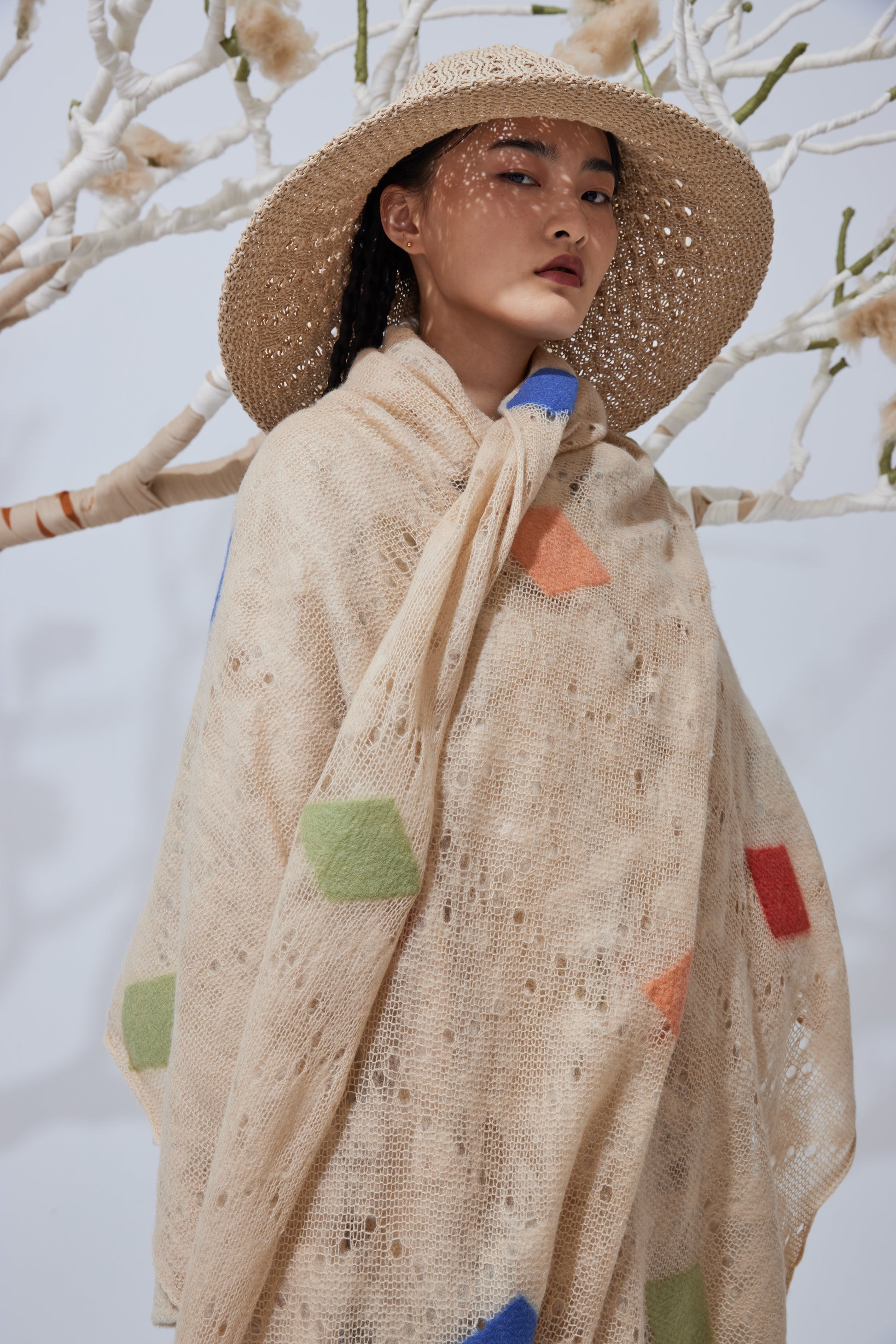 Handcrafted knit cashmere felt shawl