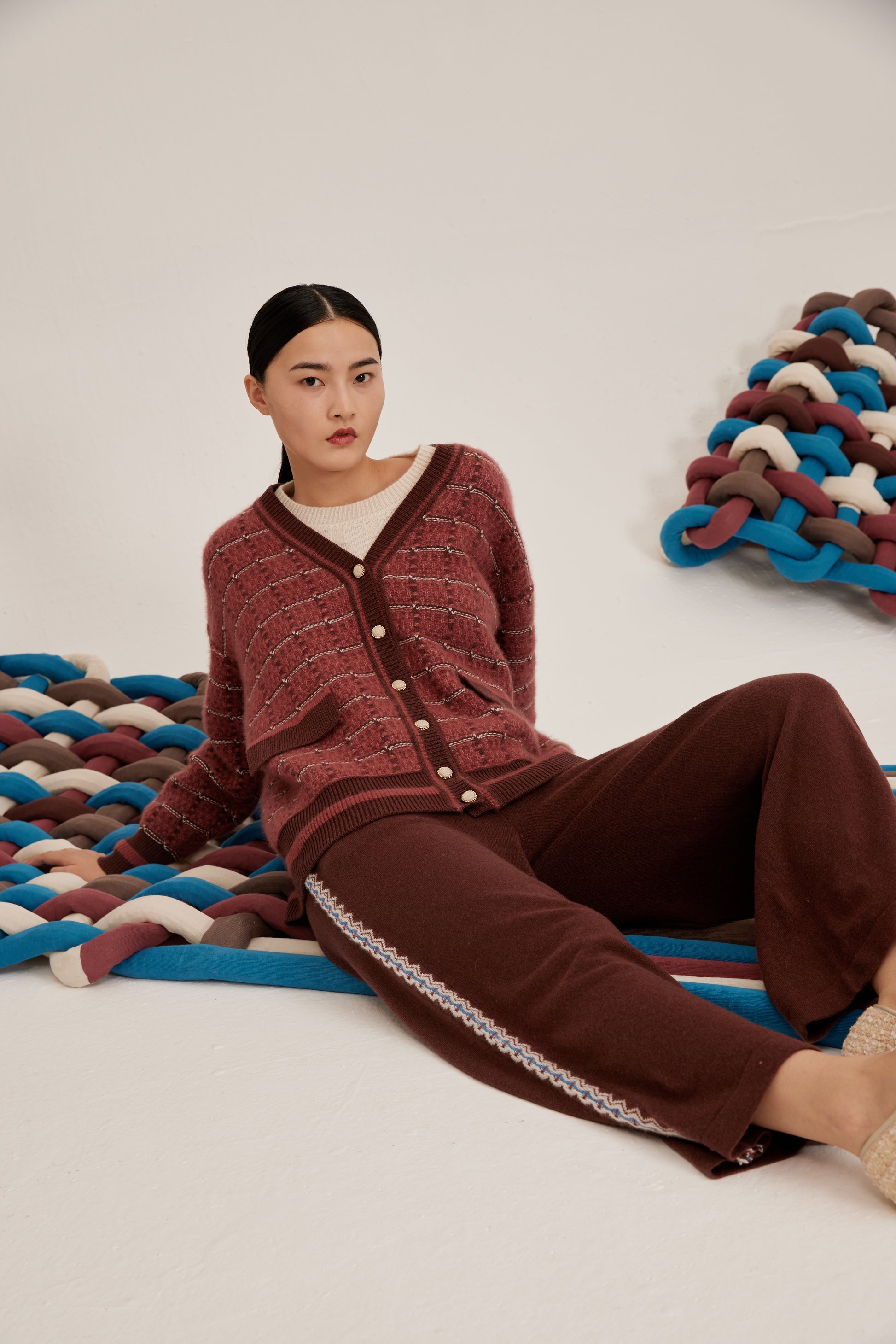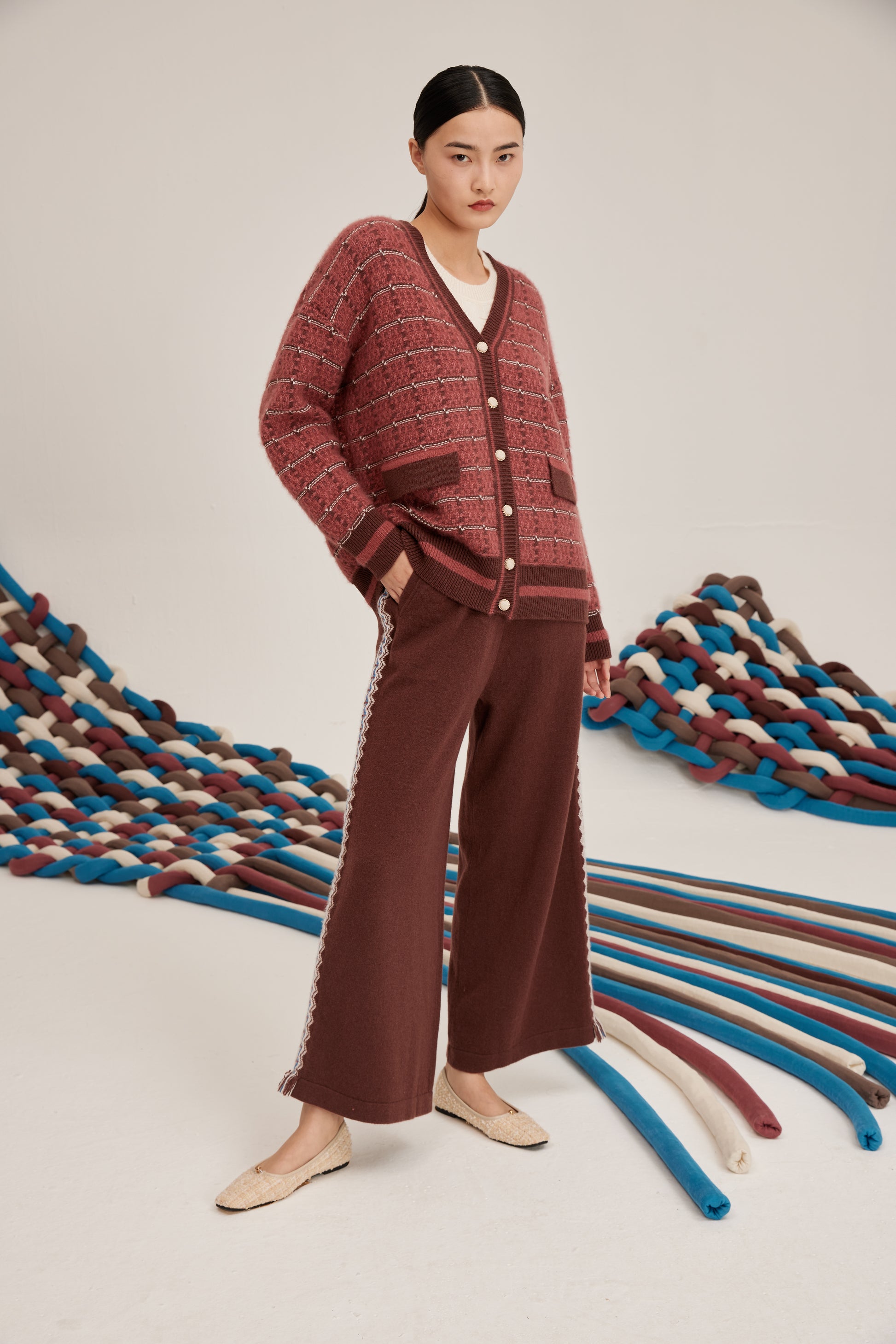 Women's cashmere knit straight trousers