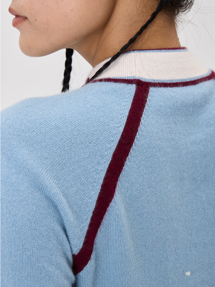 Meanwhile, the contrasting side-stripe inserts on the sleeves are presented in the same intarsia, the uplifting colors are not shouting but echoing with the main texture.