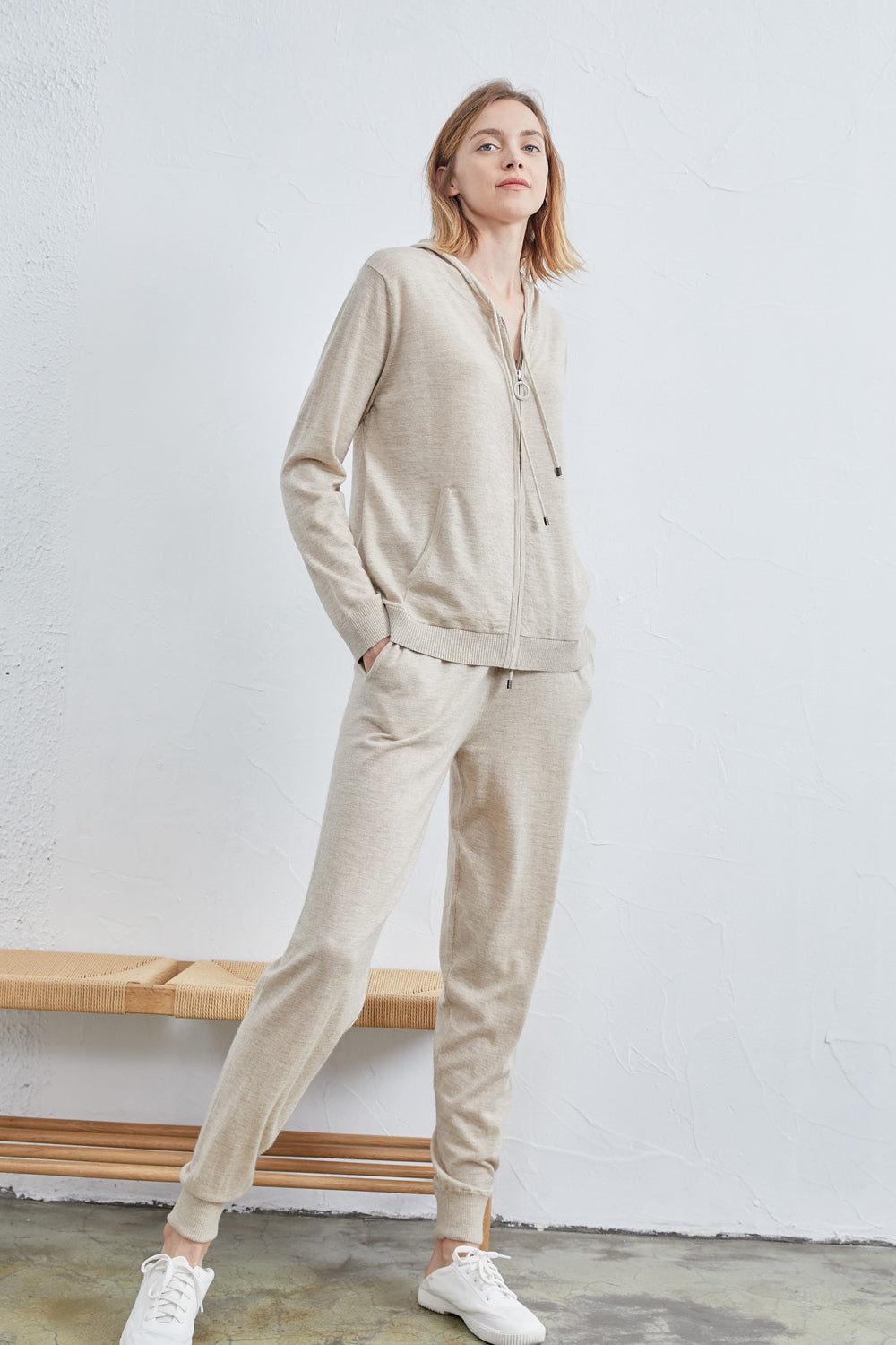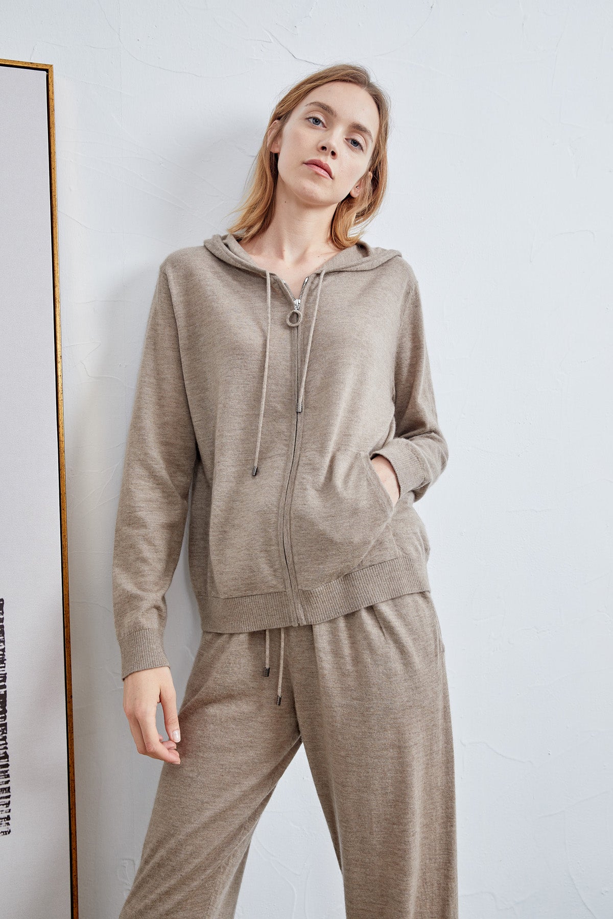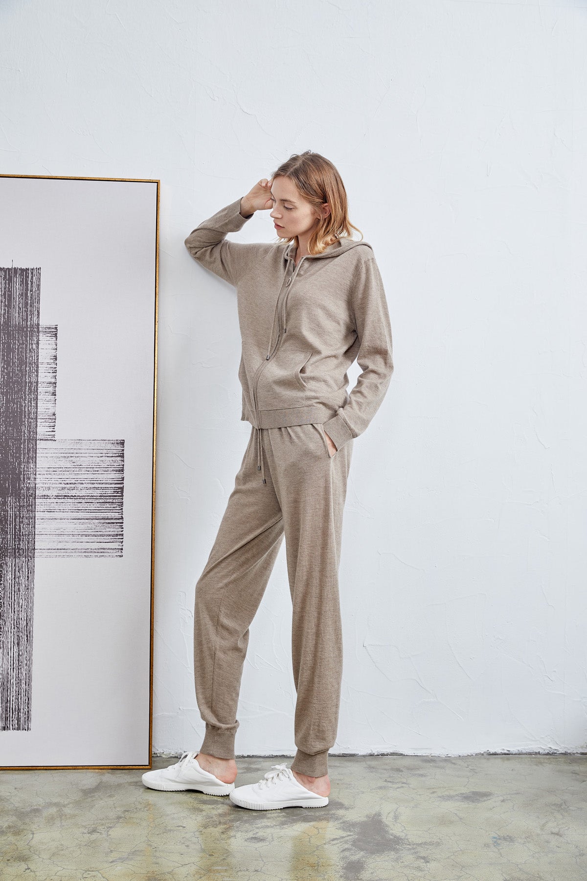 Sporty leisure simple hoodie / Wide-leg cashmere pants