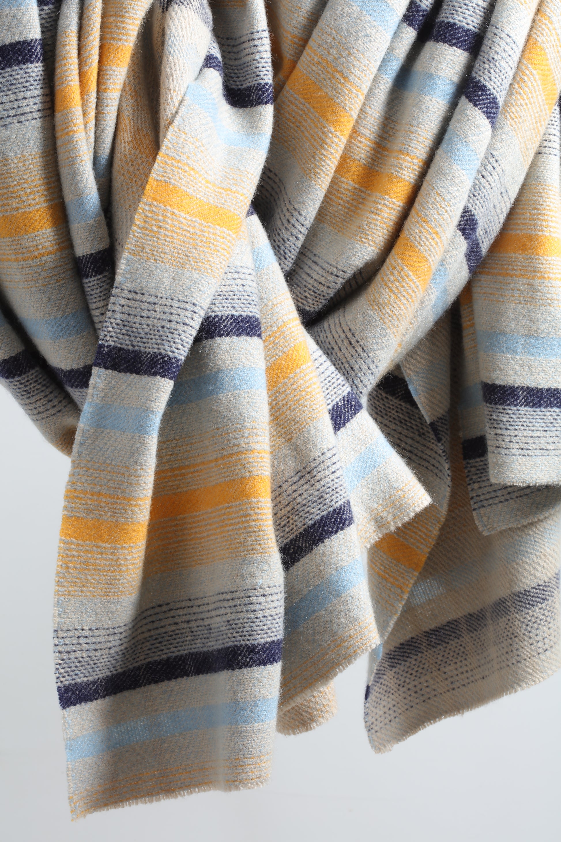 The hand-woven blanket blanced blend of superfine cashmere and precious yak wool, originating from an ancient tibet handcraft technique. The hand woven piece in the bright color, shows the unique ethnic identity of Tibetan culture.