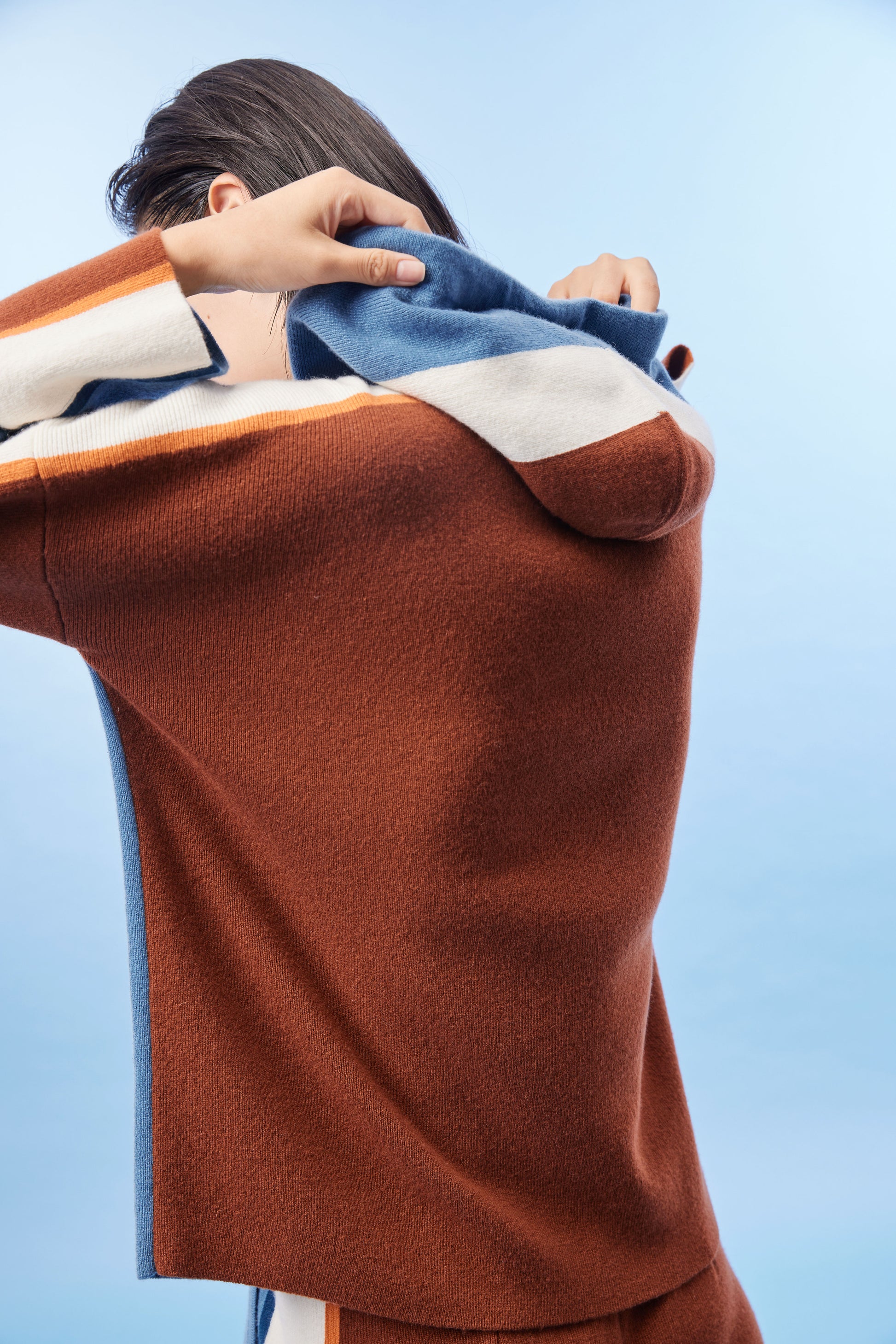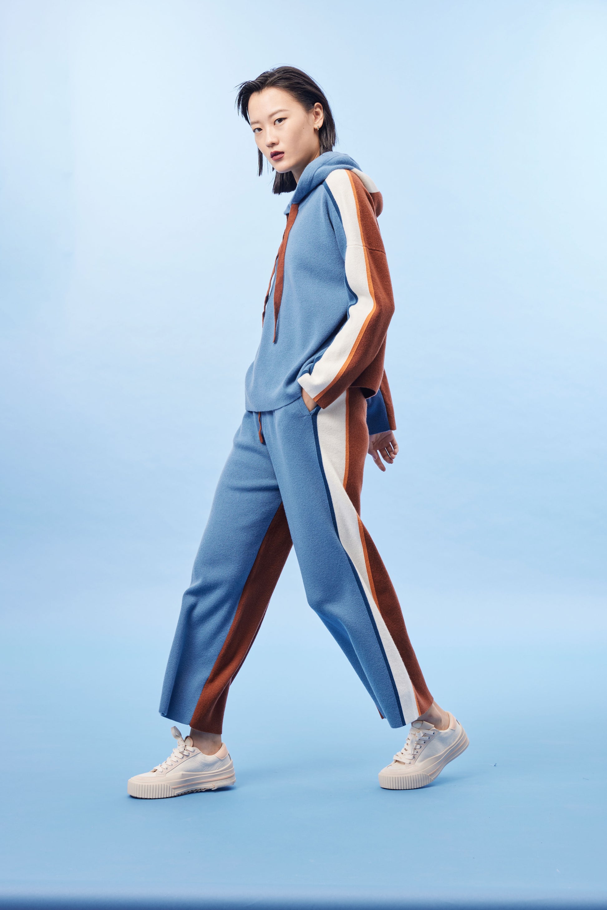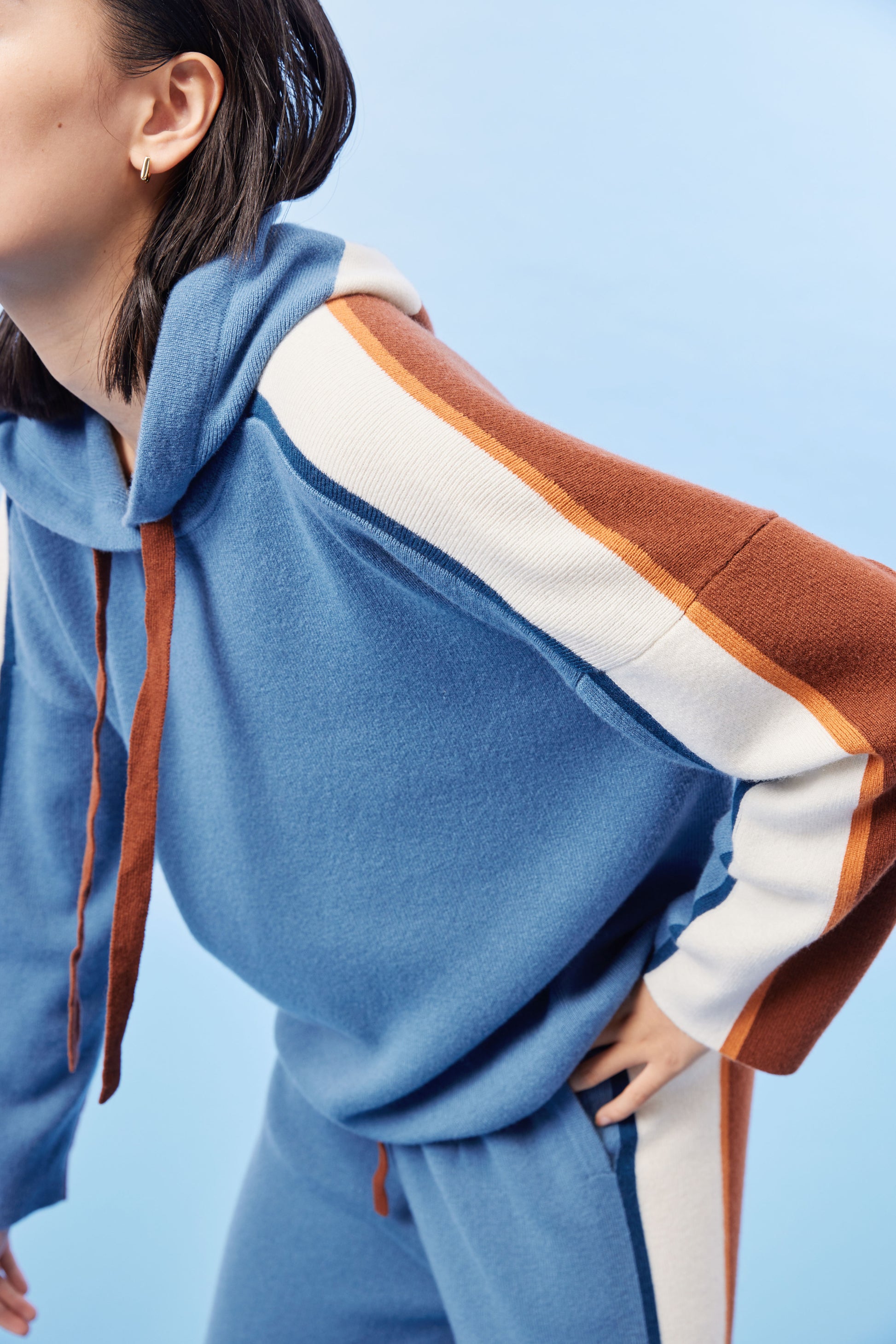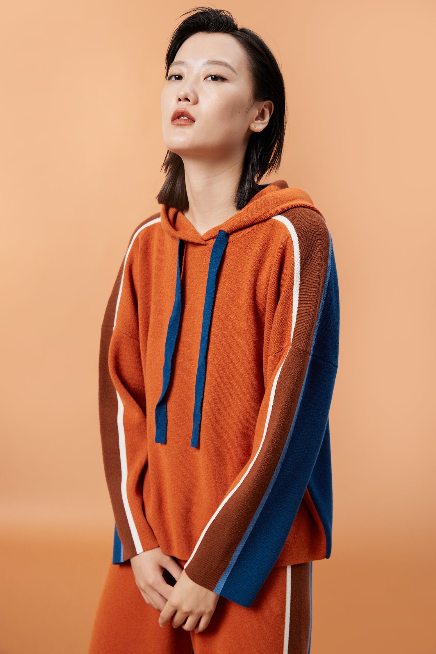 100% ribbed-knit cashmere drawing closure hoodie top, long-sleeves assorting with multiple colors.