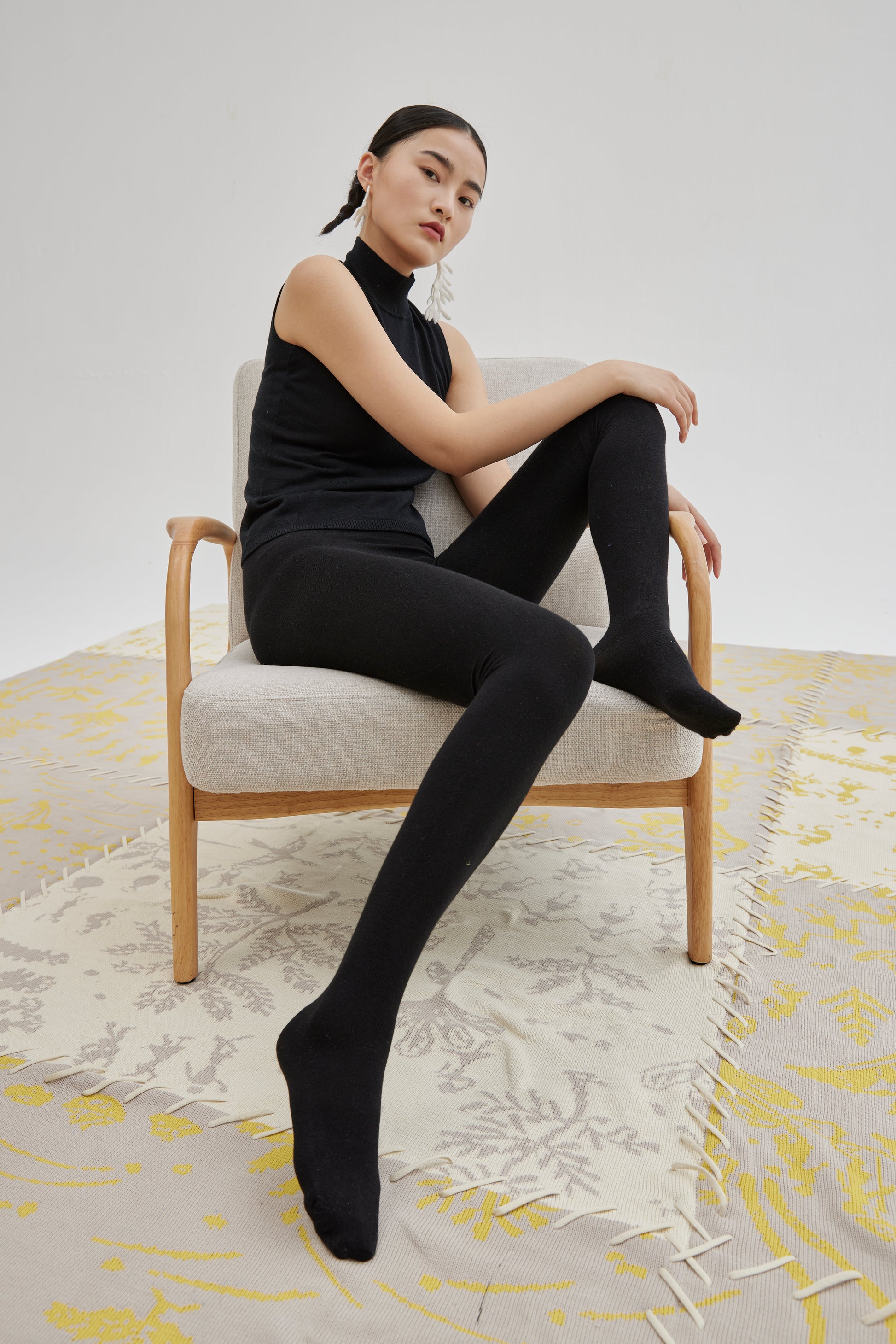 100% cashmere foot-covered tights, high-stretch designed, elasticated waistband, and a skinny cut.