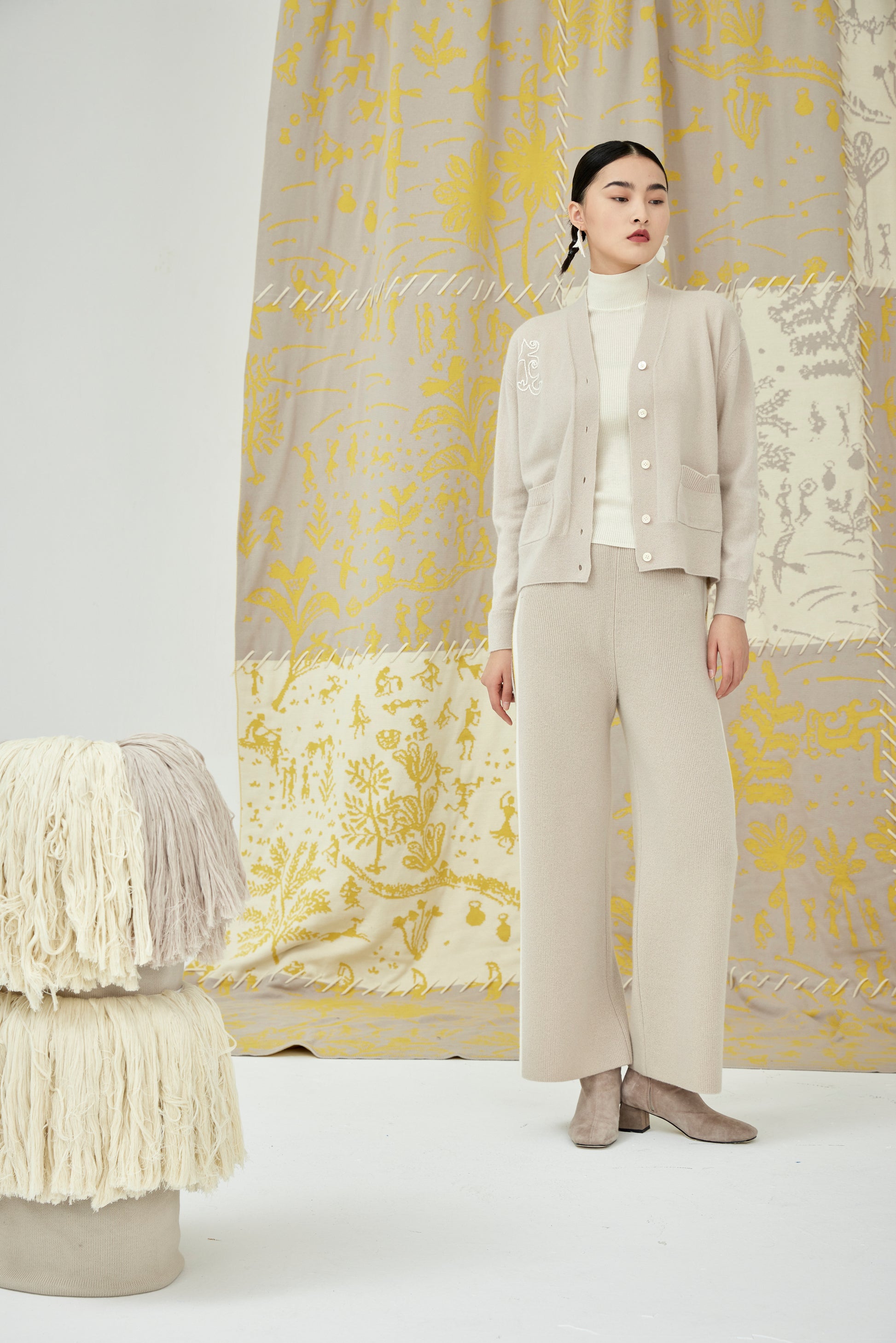 100% cashmere V-neck cardigan with handmade embroidered pattern of traditional phoenix. Part of the "Girls for Girls" women supporting project of Sandriver.