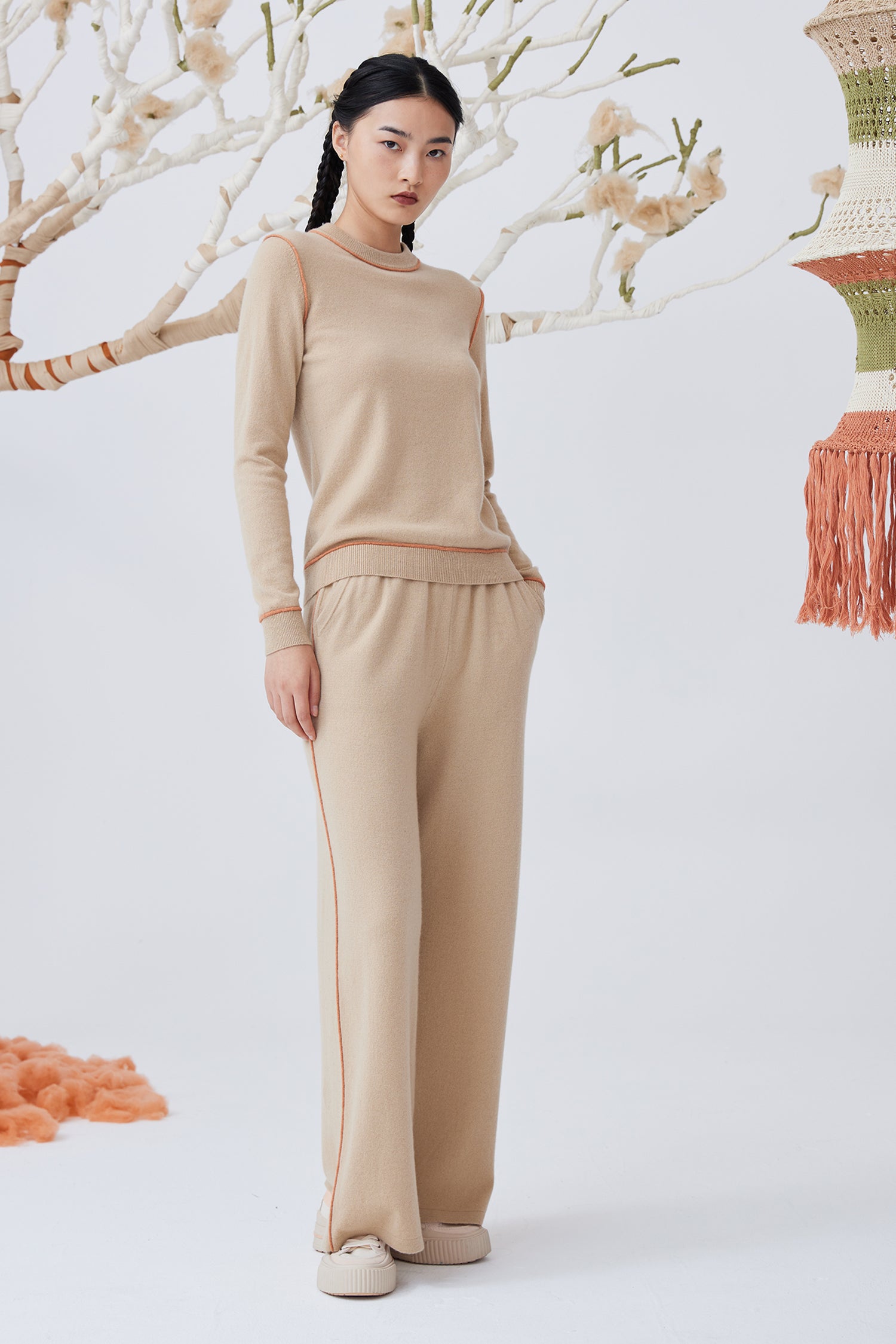Women's knit cashmere straight trousers
