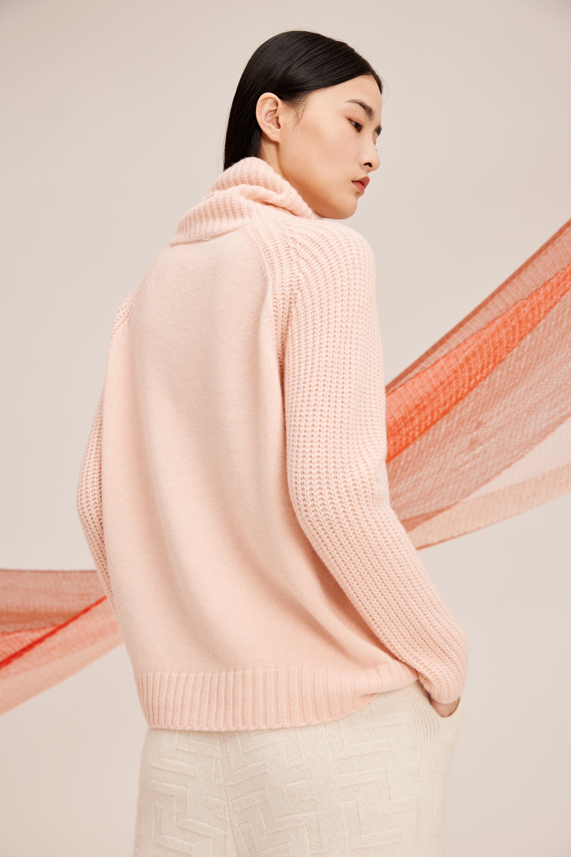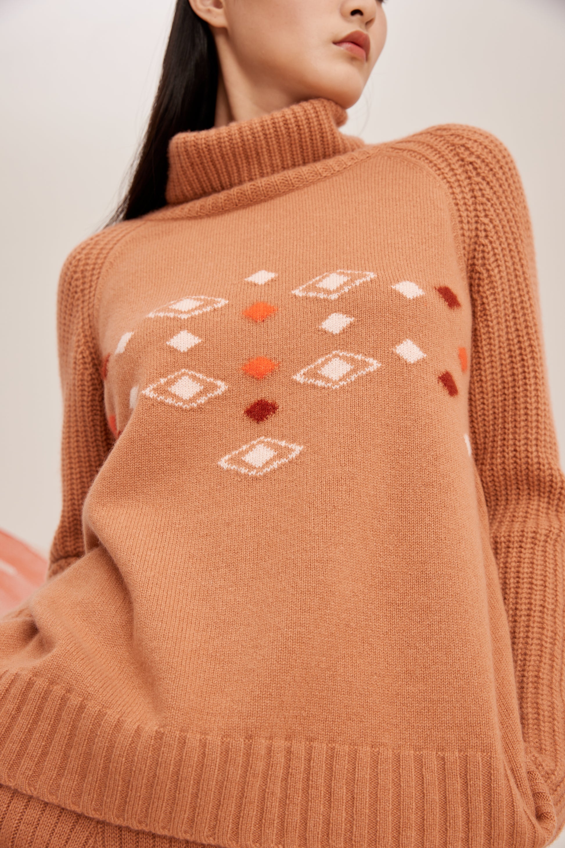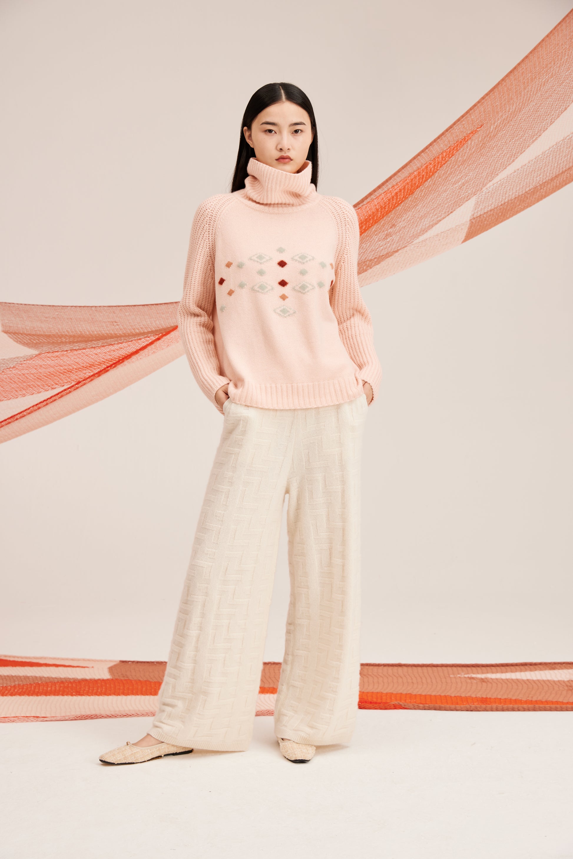 Pure cashmere bottle collar pullover, seleted 100% cashmere from Inner Mongolia, supler light and soft, the artic pattern on the chest to create sophisticated touch.