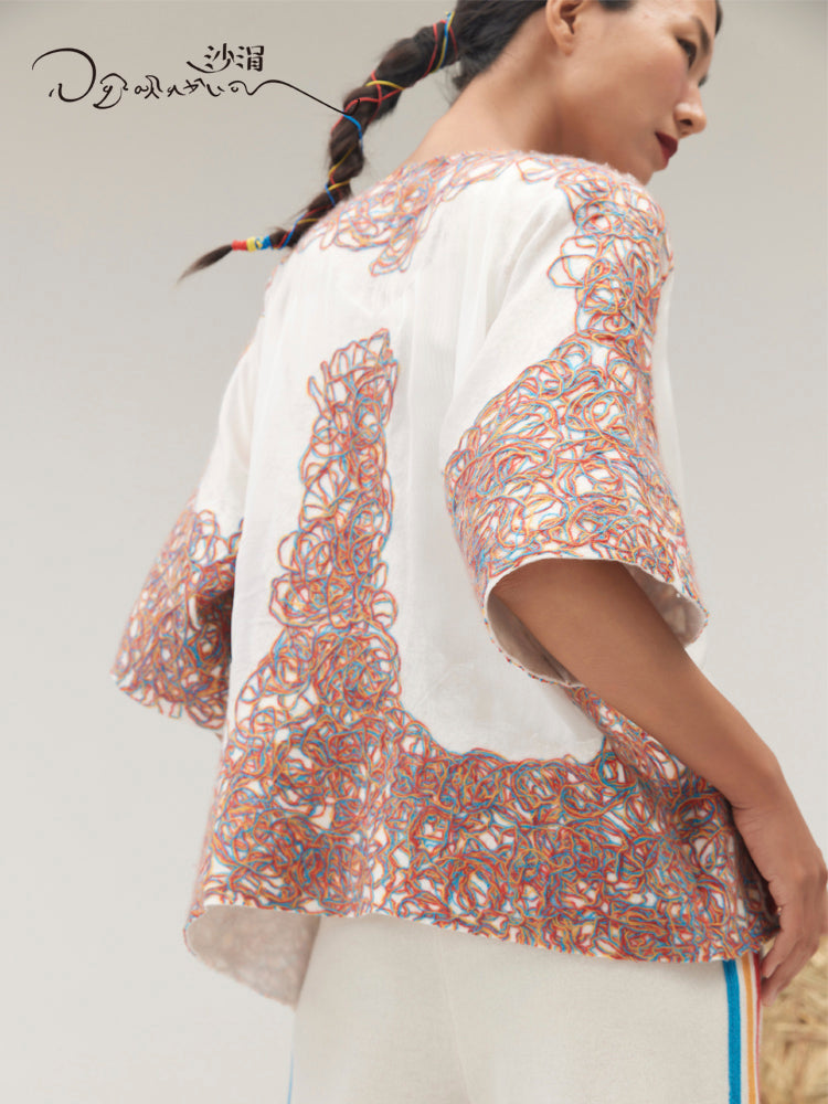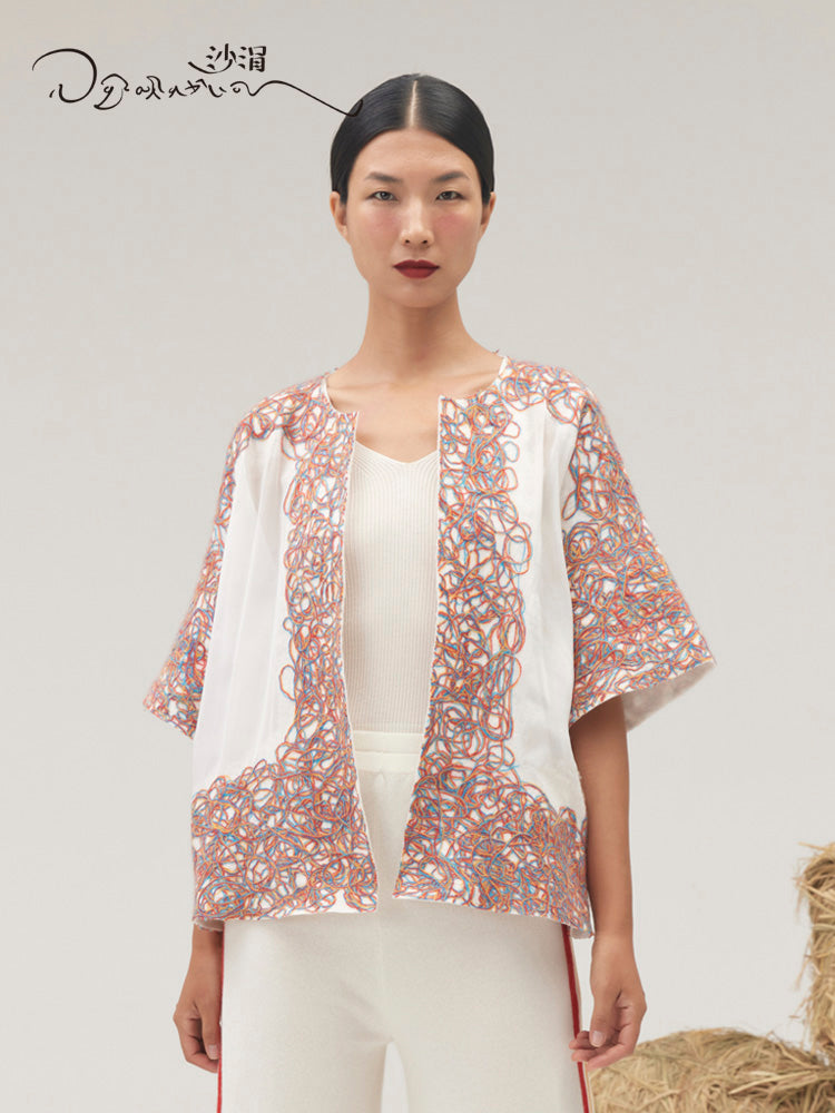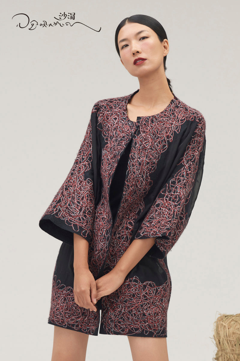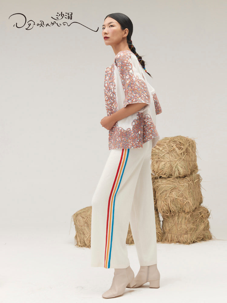 The silk as base mixed in the middle, cashmere is laid on the both sides. The fading colour makes a very artistic effect. The cashmere fibre and silk based combination create the uniqueness.