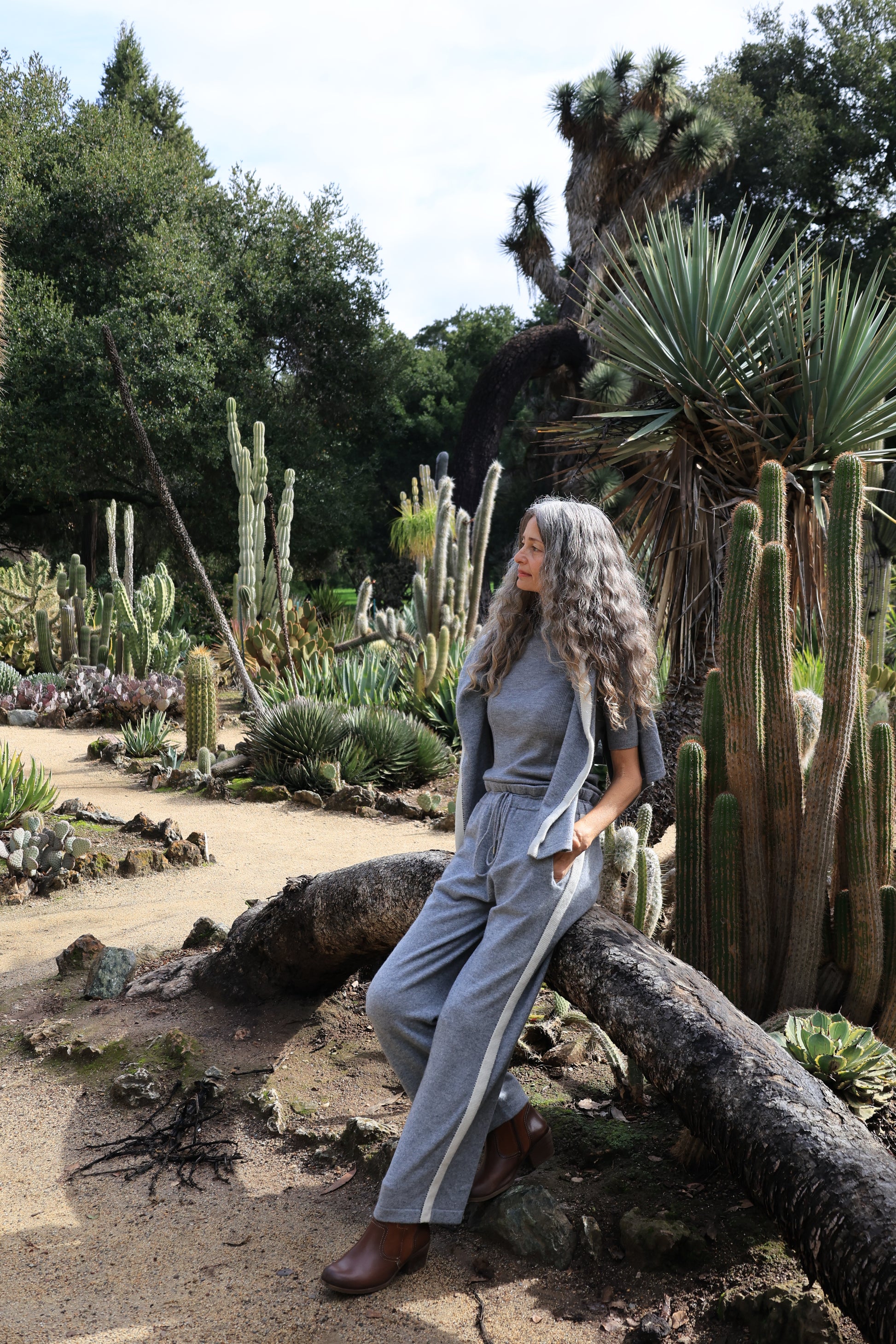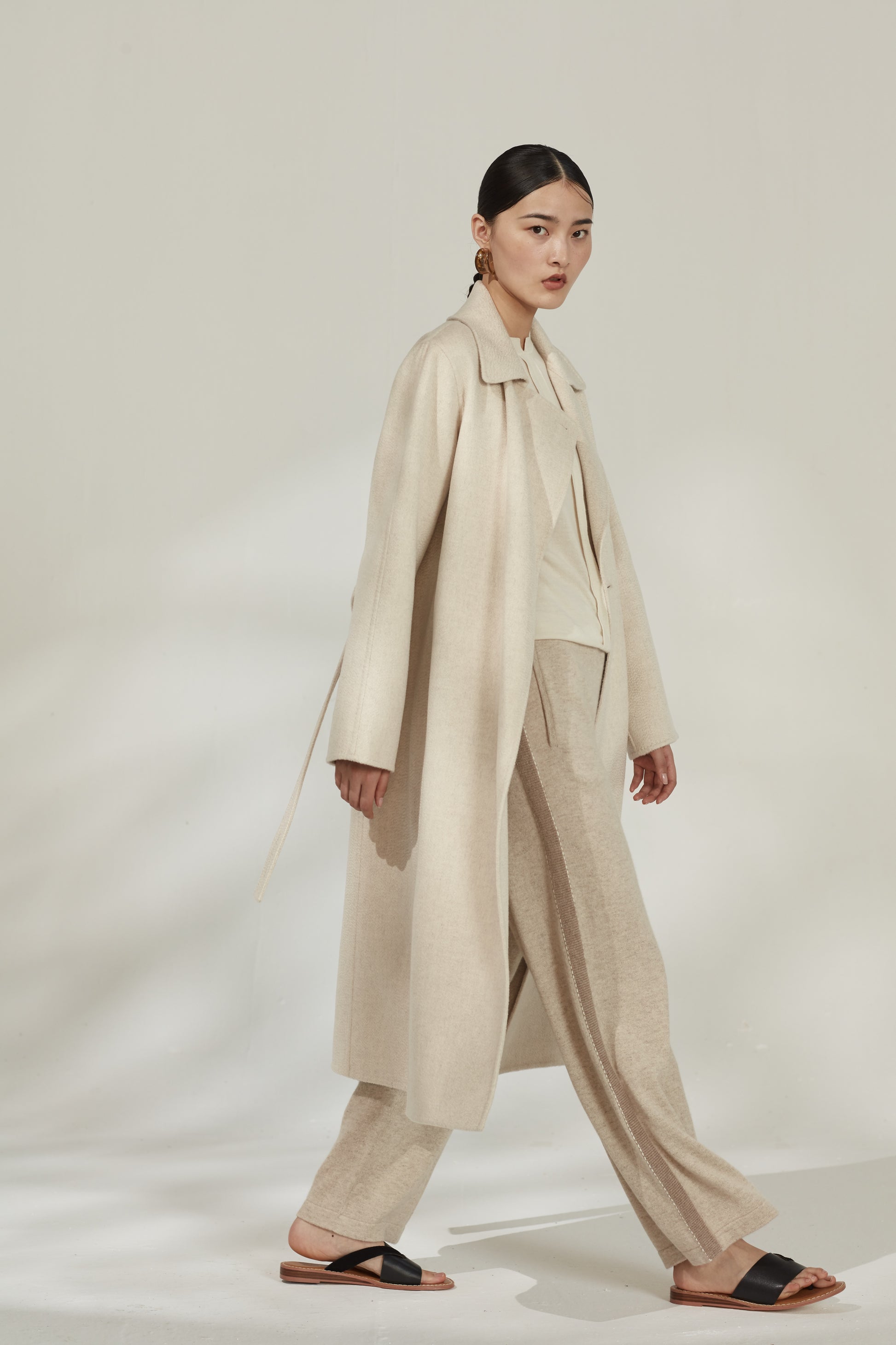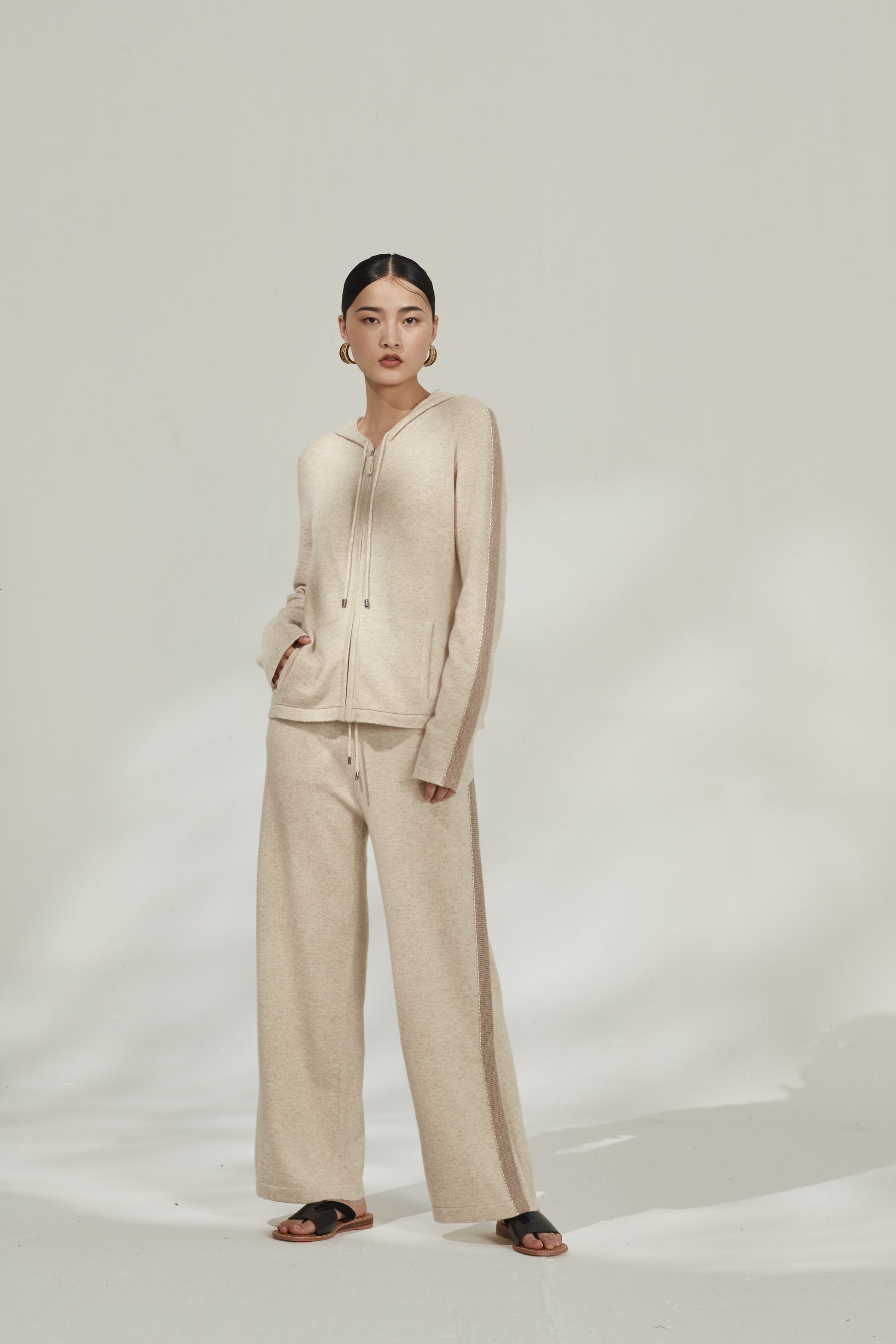 Wide leg trousers in pure cashmere with slant pockets at the sides and stripe design.